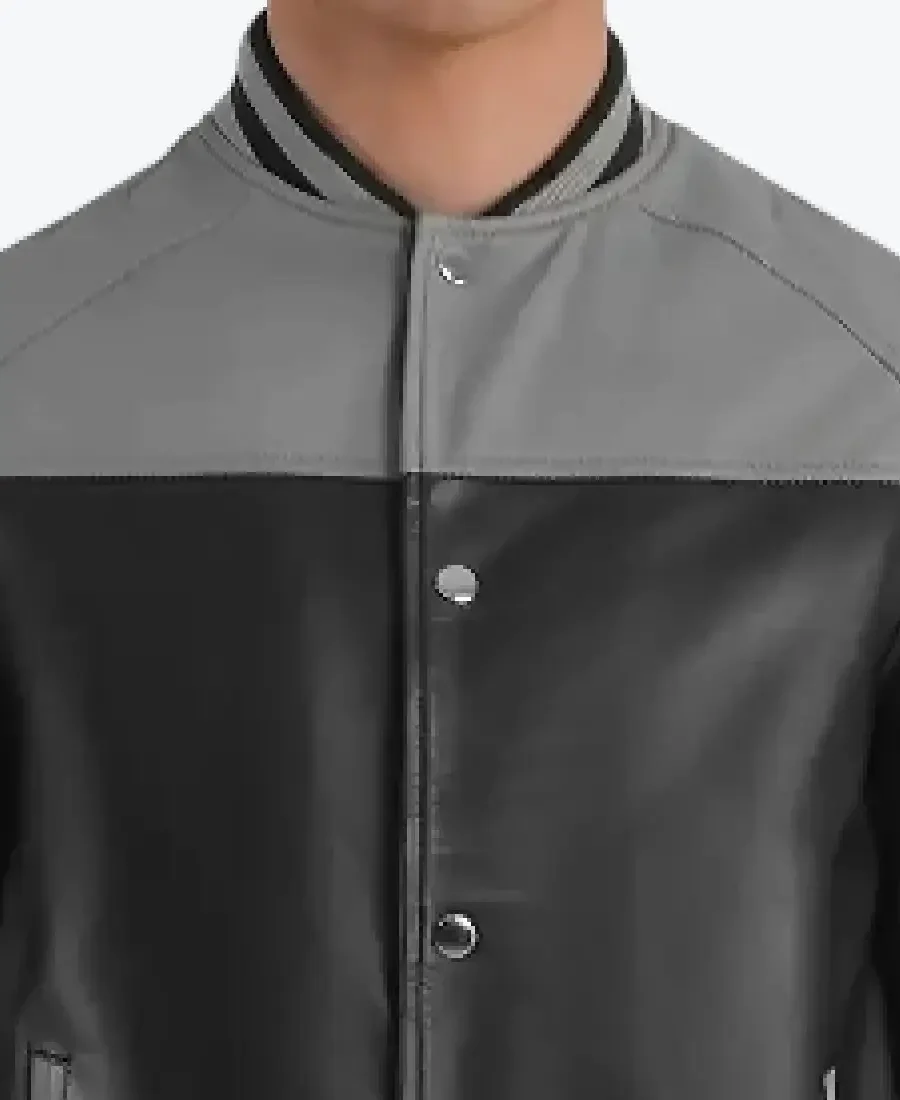 The Men’s Black and Grey Leather Varsity Jacket by Rare Jackets is a masterclass in high contrast metropolitan design and precision luxury meticulously handcrafted from premium cowhide leather or high grade faux leather. Featuring a commanding obsidian black torso paired with clinical titanium grey sleeves and upper yoke, this piece leverages a robust high grade grain and natural wind resistant properties to provide a formidable protective shell for the modern landscape. The leather is selected for its industrial grade durability and a sophisticated semi matte buttery finish, ensuring the jacket maintains a sharp authoritative frame while projecting a raw, high fashion energy. Inside, the garment is fully integrated with a silky viscose lining, providing a breathable and friction free experience for maximum all day comfort.