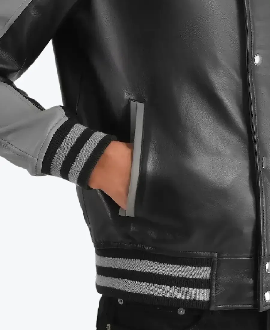 Shop The Rare Jackets Men’s Black and Grey Leather Varsity Jacket