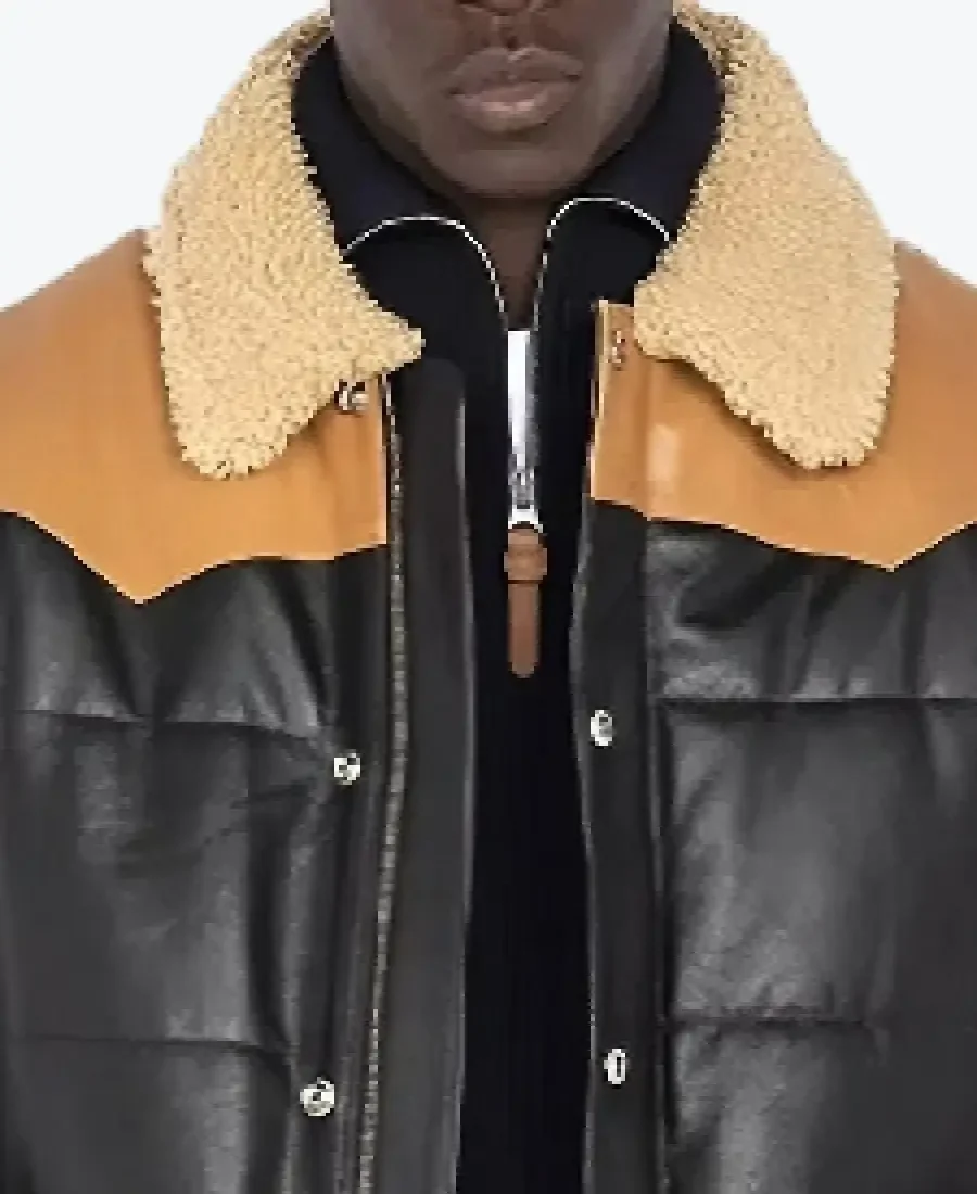 The architecture of this jacket is defined by its clean waist-length silhouette and an iconic “western-puffer” aesthetic. It features a sharp turn-down collar integrated with high-impact cream faux shearling fur, providing a structured and powerful frame to the neckline that exudes a classic professional vibe with a contemporary urban twist. The front is anchored by a dual-action closure system—featuring a high-performance central zipper concealed behind a sophisticated snap-button storm flap—maintaining a precision tailored-fit profile. To ensure a sleek and uninterrupted profile at the extremities, the full-length sleeves are finished with clean open hem cuffs, while the expert horizontal “baffle” quilting and reinforced shoulder panelling create a sophisticated architectural volume. Designed for the individual who demands maximum artistic flair within a polished frame, this Rare Jackets essential features a strategic four-pocket configuration—including two oversized external side-entry pockets and two hidden inner pockets—offering secure storage while reinforcing the jacket’s sleek, high-impact silhouette.
