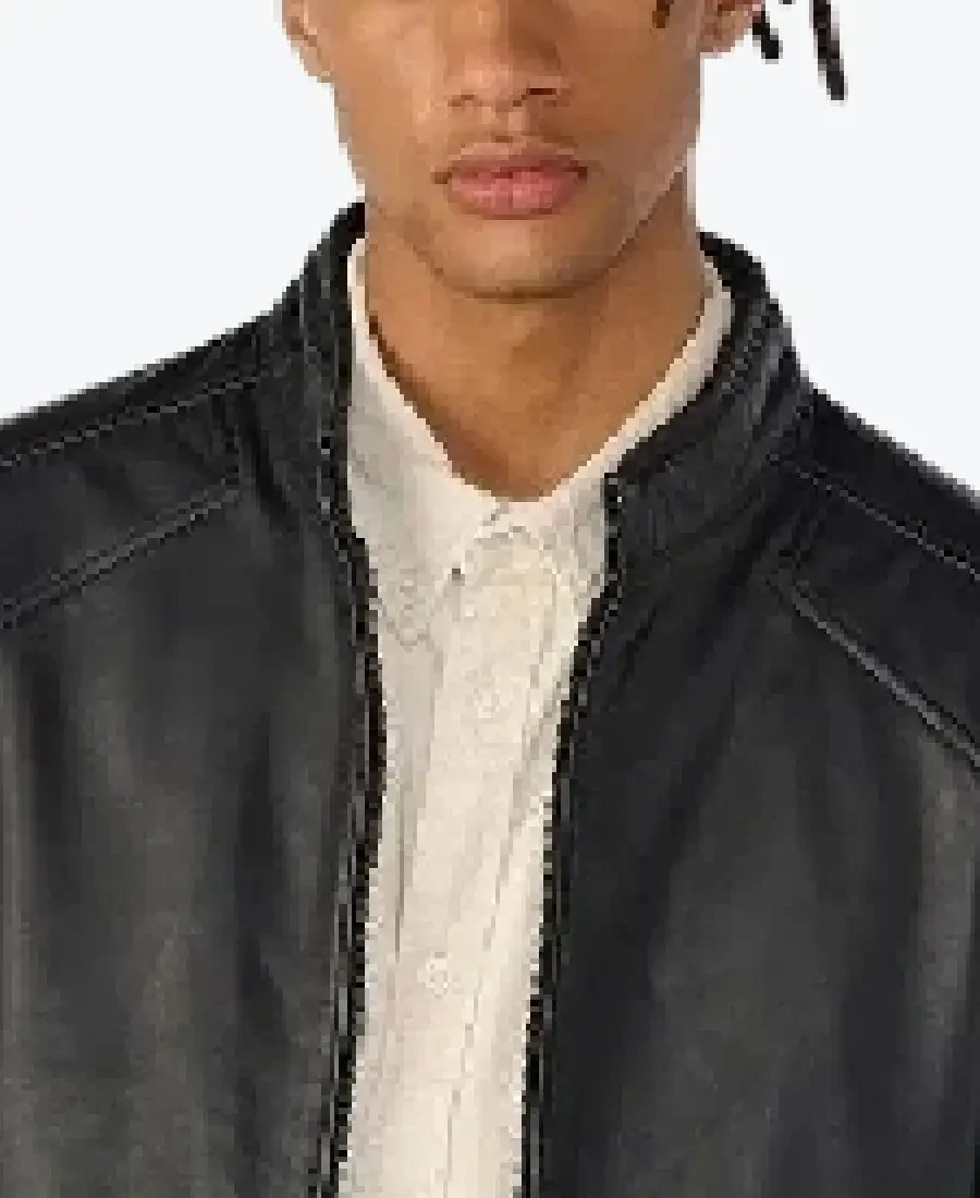 The architecture of this jacket is defined by its clean waist length silhouette and an iconic metropolitan racer aesthetic. It features a sharp erect band collar providing a structured and powerful frame to the neckline that exudes a classic professional vibe with a contemporary urban twist. The front is anchored by a high performance central zipper closure, maintaining a precision tailored fit profile that emphasizes the unique diamond yoke shoulder panelling and expert horizontal bicep seam detailing. To ensure a sleek and uninterrupted profile at the extremities, the full length sleeves are finished with clean open hem cuffs, while the reinforced horizontal waistband and technical sleeve pocket integration create a sophisticated architectural volume. Designed for the individual who demands maximum organized utility within a polished frame, this Rare Jackets essential features a strategic pocket configuration including a dedicated utility zipper pocket on the sleeve and two discreet side entry zipper pockets offering secure storage while reinforcing the jacket’s sleek, high impact silhouette.