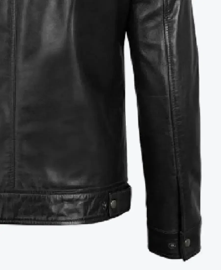 The architecture of this jacket is defined by its ultra sleek waist length silhouette and an iconic metropolitan Harrington aesthetic. It features a sharp turn down shirt style leather collar providing a structured and powerful frame to the neckline that exudes a classic professional vibe with a contemporary urban twist. The front is anchored by a high performance central zipper closure maintaining a precision tailored fit profile that emphasizes the expansive leather panelling and expert vertical anatomical seam construction. To ensure a sleek and custom look at the extremities the full length sleeves are finished with clean snap button cuffs while the reinforced horizontal waistband with adjustable side tabs creates a sophisticated architectural volume. Designed for the individual who demands maximum artistic flair within a polished frame this Rare Jackets essential features a strategic pocket configuration including two discreet side entry welt pockets and hidden inner pockets offering secure storage while reinforcing the jacket’s sleek high impact silhouette.