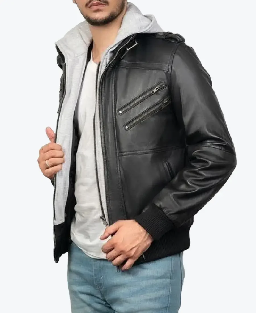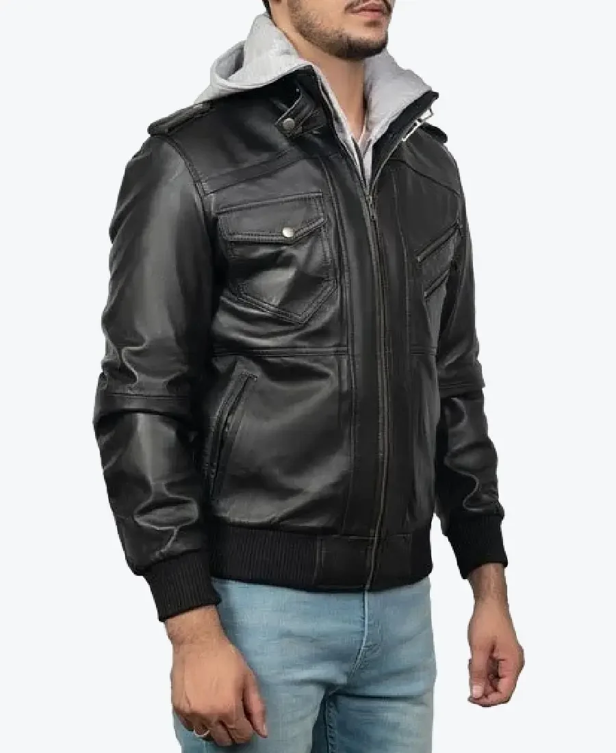Men’s Black Hooded Bomber Jacket