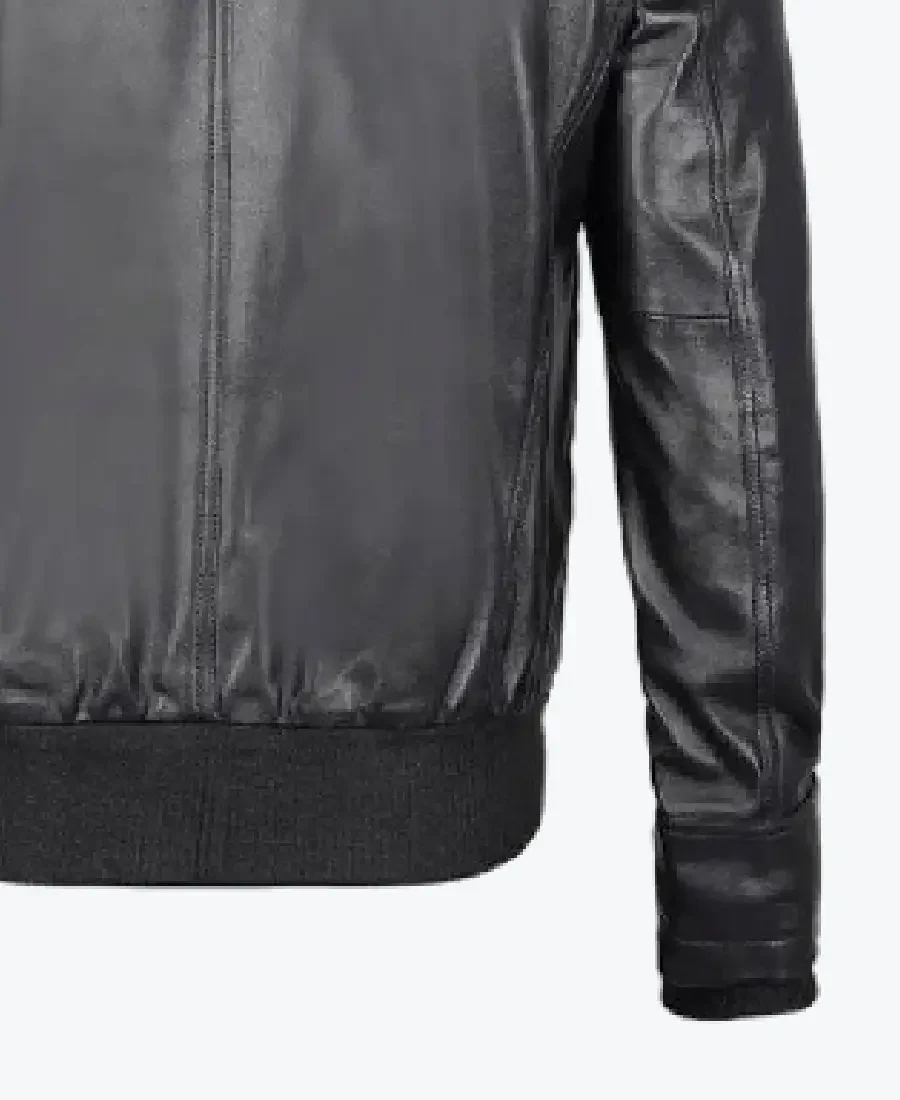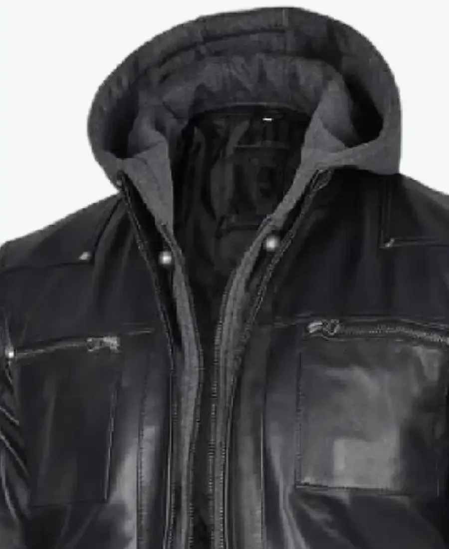 Mens Black Leather Jacket With Grey Hoodie