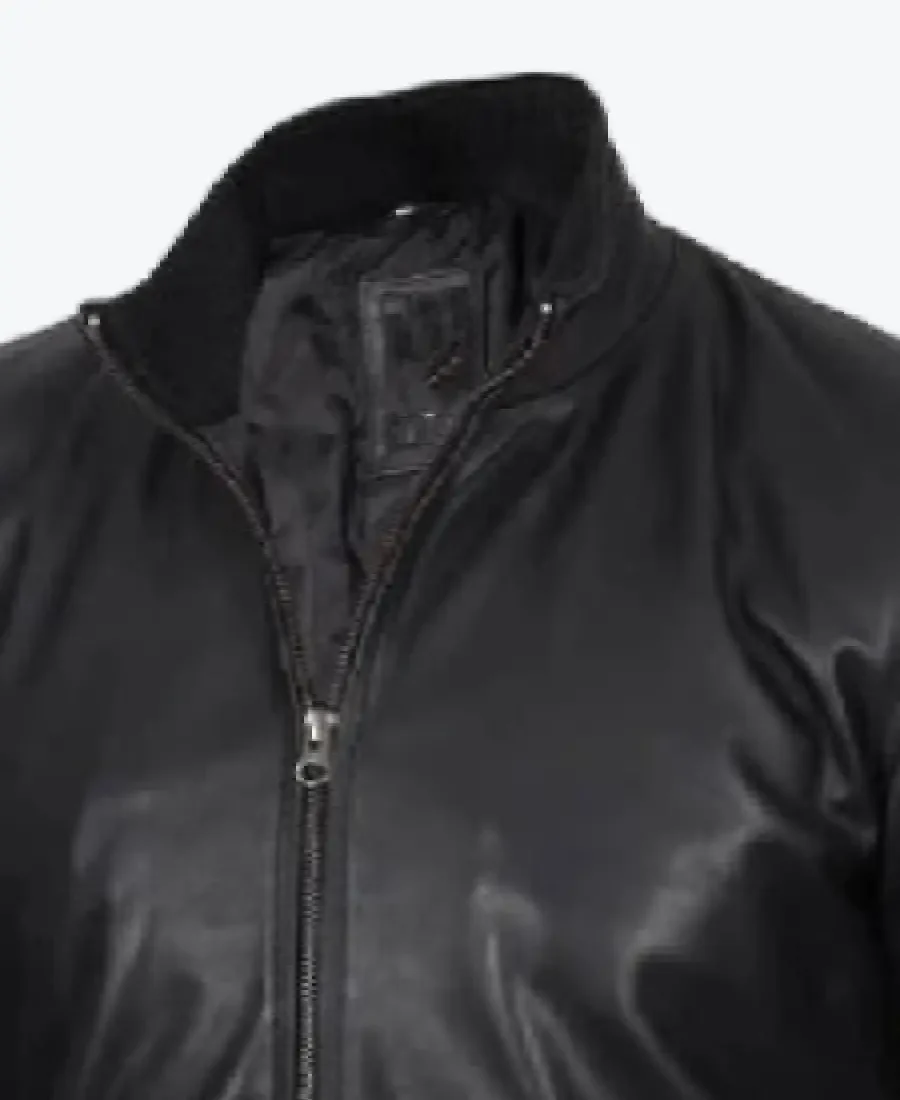 The architecture of this jacket is defined by its clean slim-fit silhouette and an iconic metropolitan “maverick” bomber aesthetic. It features a sharp rib-knitted stand-up collar providing a structured and powerful frame to the neckline that exudes a classic professional vibe with a contemporary urban twist. The front is anchored by a high-performance central silver zipper closure, maintaining a precision tailored fit profile that emphasizes the expansive leather panelling and expert ergonomic shoulder construction. To ensure superior heat retention and a custom look at the extremities, the full-length sleeves and wide waist hemline are finished with high-impact tonal rib-knitted cuffs and a matching waistband, while the expert anatomical tailoring creates a sophisticated architectural volume. Designed for the individual who demands maximum organized utility within a polished frame, this Rare Jackets essential features a strategic pocket configuration including two discreet side entry welt pockets, a technical utility arm pocket, and a hidden inner pocket offering secure storage while reinforcing the jacket’s sleek, high-impact silhouette.
