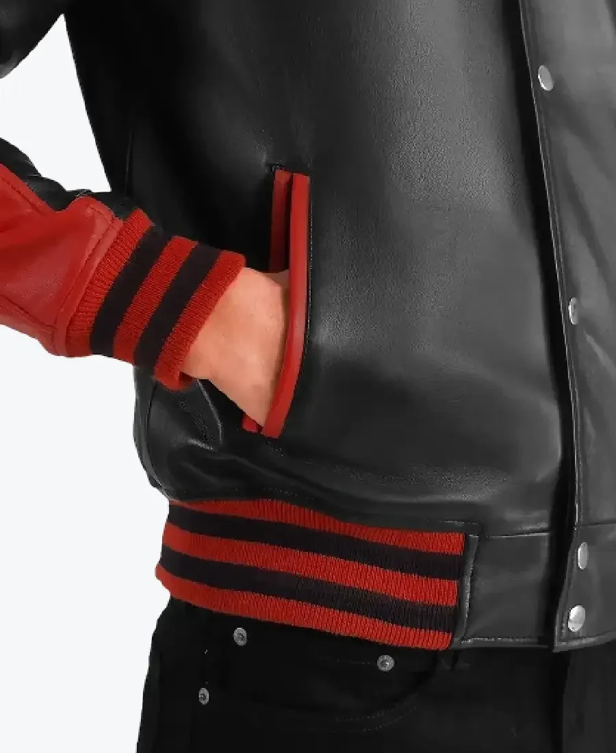 Men’s Black & Red Leather Varsity Jacket