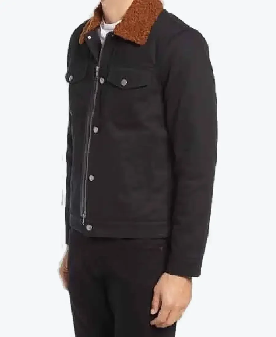Shop The Rare Jackets Men’s Black Shearling Collar Cotton Jacket