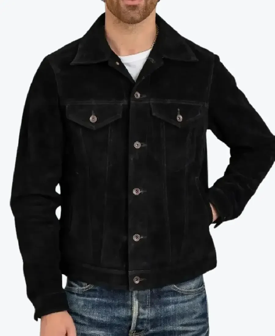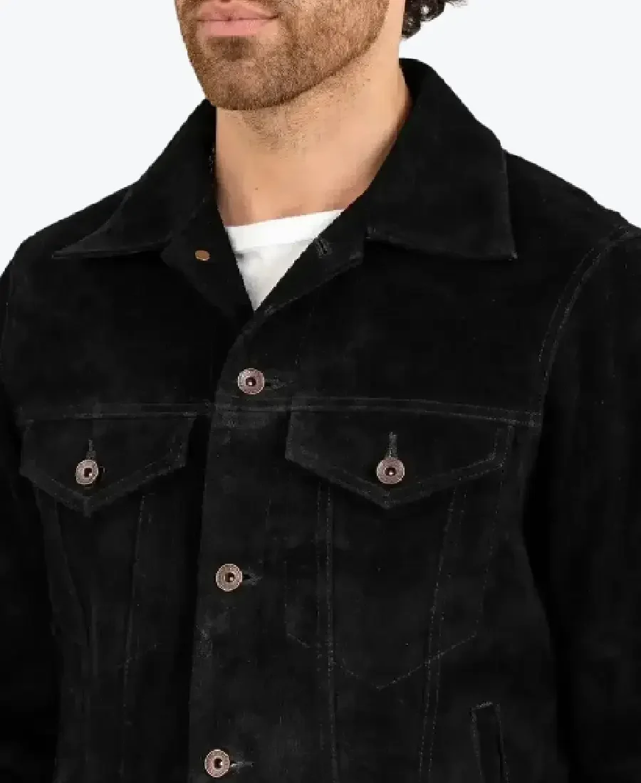 Shop The Rare Jackets Men’s Black Suede Trucker Jacket