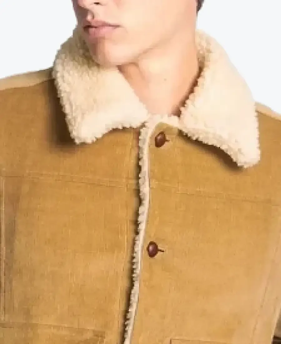 The design features a plush faux shearling collar, offering a soft and functional seal that provides extra protection against the cold while adding a luxurious textured edge to the jacket’s profile. A traditional buttoned closure ensures a secure seal while maintaining an authentic and structured appearance. This jacket is highly functional and well-organized, featuring four pockets in total—two chest flap pockets for a signature utilitarian touch and convenient storage, and two inner pockets for the secure organization of personal essentials. Full-length sleeves are finished with buttoned cuffs, providing an adjustable fit and a clean, tailored finish at the wrists. The rich brown color provides a warm and versatile foundation that coordinates effortlessly with any casual or street-style ensemble. This garment serves as a reliable and stylish centerpiece for your outerwear collection and stands as a piece of premium craftsmanship.