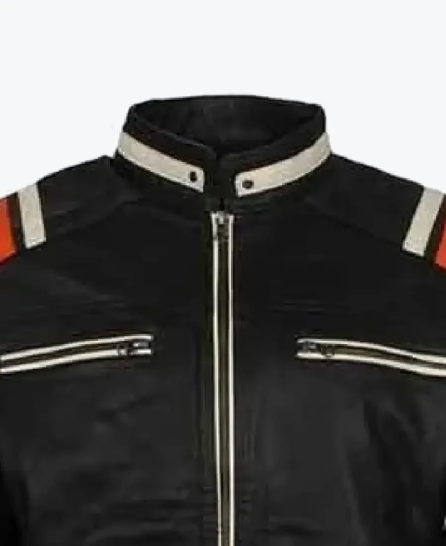 Men’s Cafe Racer Striped Black Retro Biker Jacket