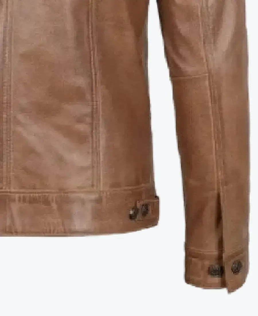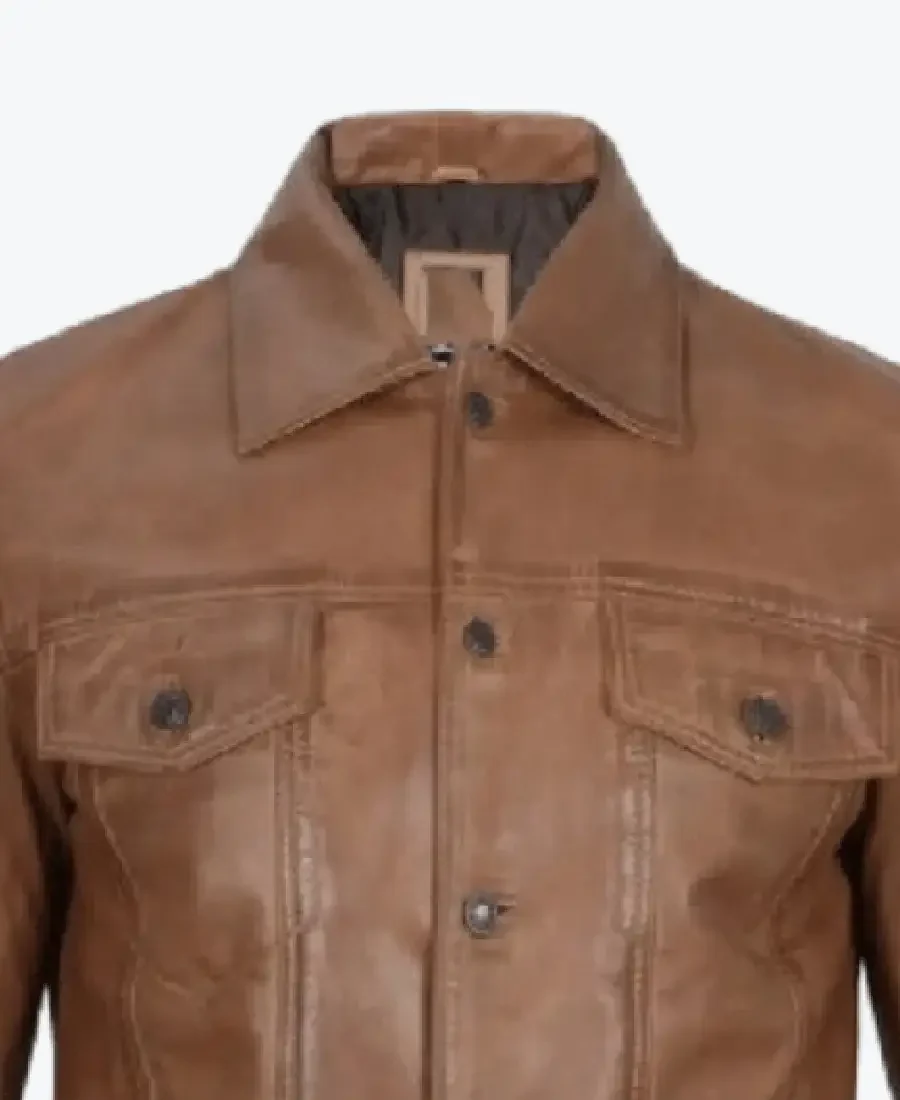 Mens Camel Brown Trucker Leather Jacket