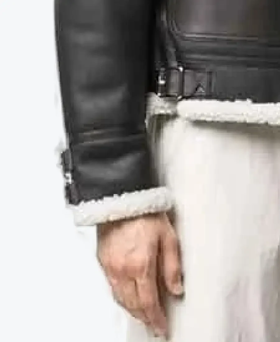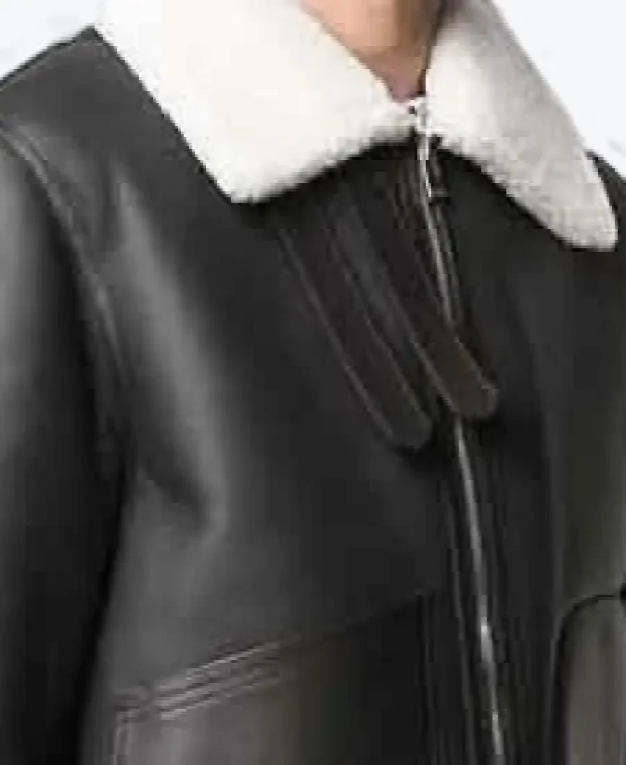 The architecture of this jacket is defined by its clean, aerodynamic lines and unique oversized geometric patch pockets. It features a contemporary shirt style fur collar, providing a textured and powerful frame to the neckline that exudes a modern interpretation of the classic aviator aesthetic. The front is anchored by a high-performance centered zipper closure, maintaining a precision slim-fit profile. To ensure maximum heat retention and a custom cinch at the extremities, the full-length sleeves are finished with sophisticated belted cuffs and fur-trimmed edges, complemented by an adjustable belted hemline with polished silver-tone hardware. Designed for the individual who demands standout utility within a minimalist frame, this Rare Jackets essential features a strategic two vertical inside pocket configuration, offering secure storage while reinforcing the jacket’s sleek, high-impact silhouette.