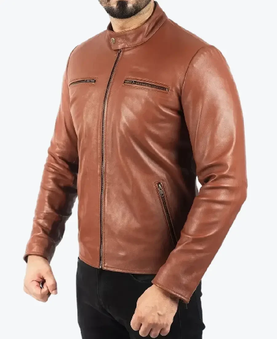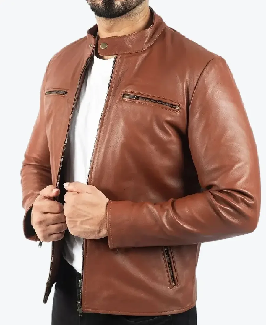 Men’s Classic Brown Leather Biker Jacket