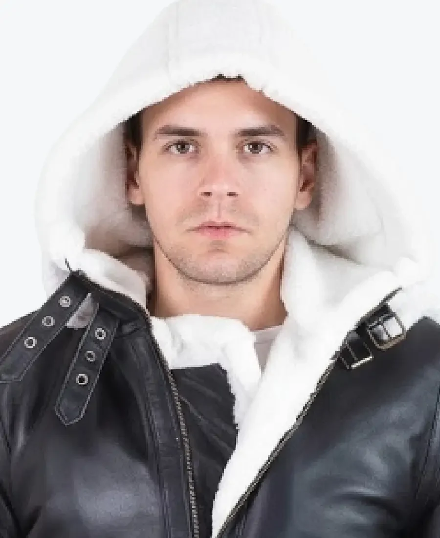 The architecture of this jacket is defined by its clean, aerodynamic lines and iconic exposed shearling trim. It features a versatile faux fur-lined collar equipped with a removable white fur hood, offering adaptable protection and a textured, powerful frame to the neckline. The high-impact design is characterized by ribbed horizontal padding on the upper arms and sophisticated triple-belted cuffs at the wrists, creating a bold, tactical visual. The front is anchored by a high-performance centered zipper closure, complemented by a dual-buckle throat latch for a secure, architectural cinch. To ensure maximum heat retention, the hemline is finished with a thick fur-trimmed edge, reinforced by a structured waistband. Designed for the individual who demands maximum organized utility, this Rare Jackets essential features a strategic four-pocket configuration, including two vertical side zip pockets and two hidden inner pockets, offering secure storage while reinforcing the jacket’s powerful, athletic silhouette.