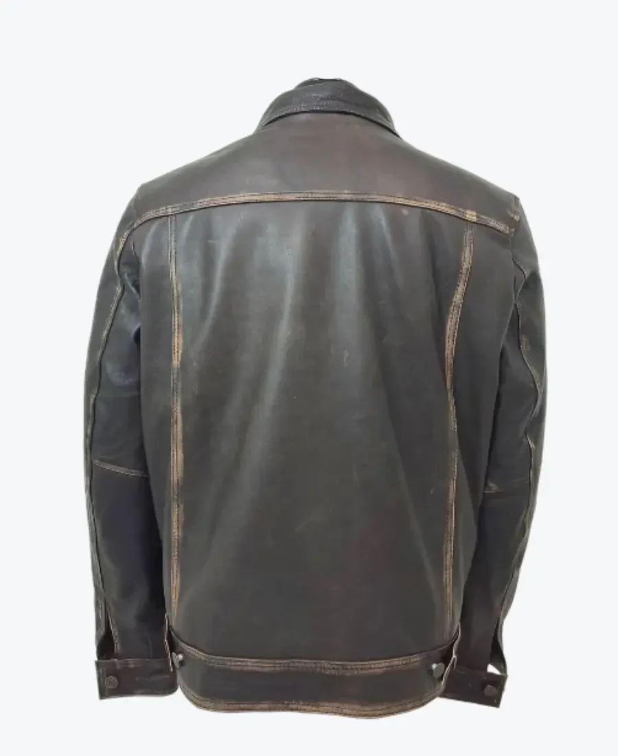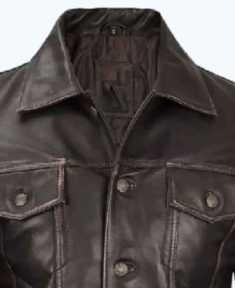 Mens Dark Brown Leather Trucker Jacket
