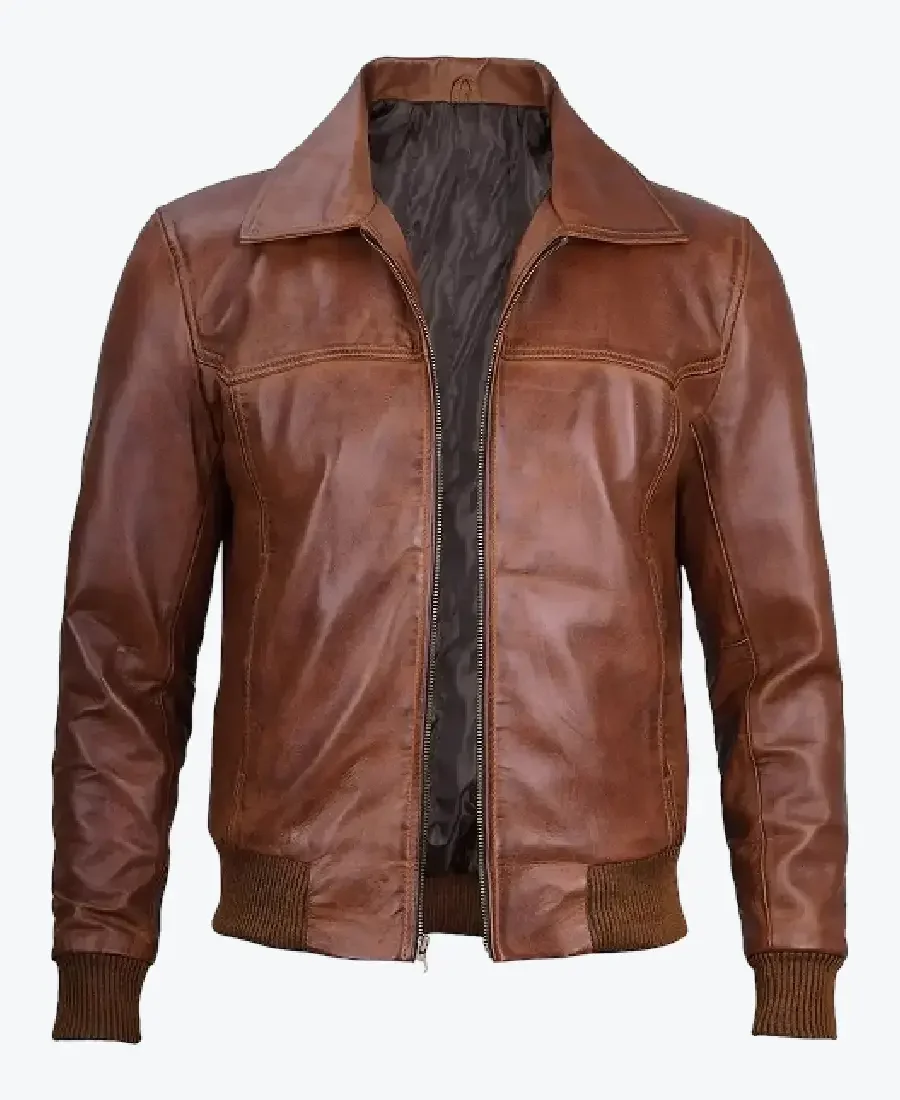Mens Distressed Brown Bomber Leather Jacket