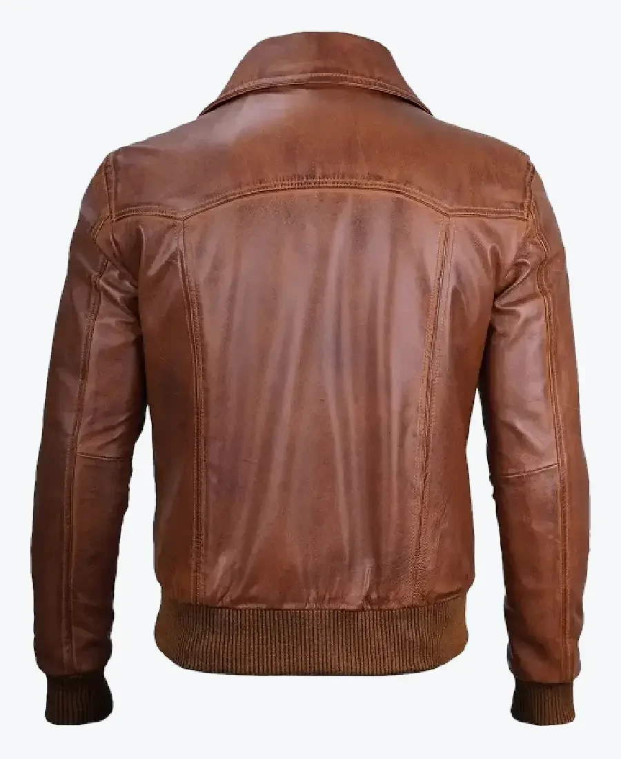 Shop The Rare Jackets Men’s Distressed Brown Bomber Leather Jacket