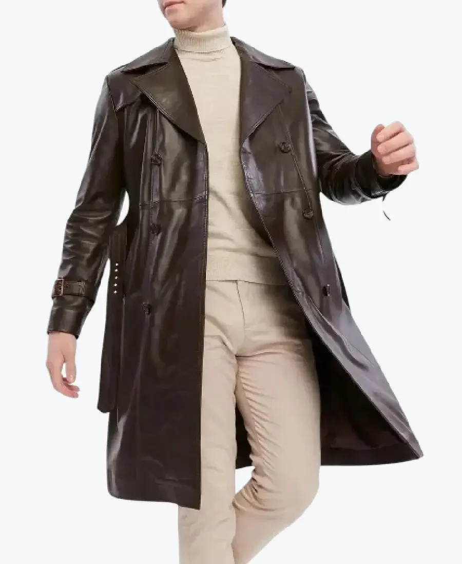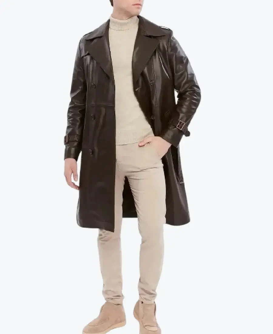 The Men’s Double Breasted Brown Trench Leather Coat by Rare Jackets is a masterclass in cinematic tailoring and precision urban luxury, meticulously handcrafted from premium cowhide leather (also available in high-grade faux leather). Drenched in a commanding and sophisticated deep mahogany brown, this piece leverages a robust, high-grade grain and natural wind-resistant properties to provide a formidable protective shell. The hide is selected for its industrial-grade durability and a high-sheen, polished finish, ensuring the trench maintains a sharp, authoritative frame while projecting a raw, executive energy. Inside, the garment is fully lined with a silky viscose lining, providing a breathable and friction-free experience for maximum all-day comfort.