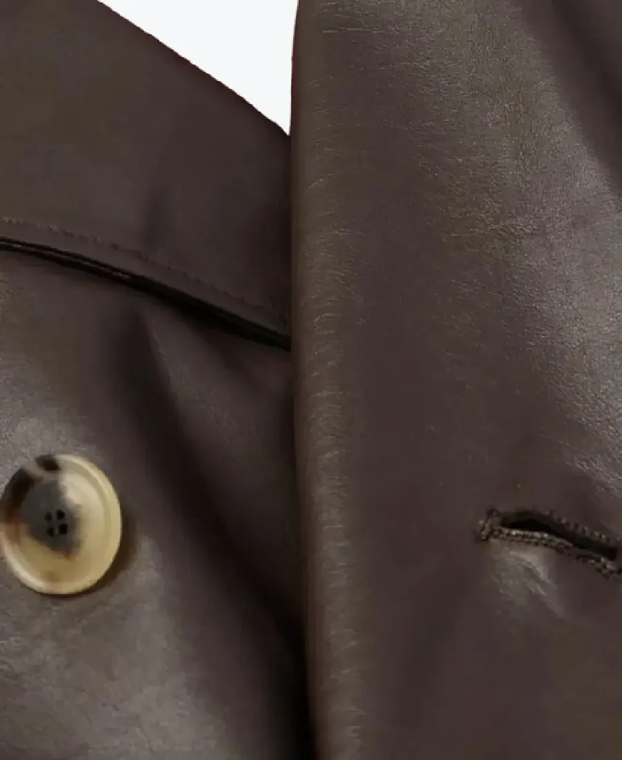 The Men’s Double Breasted Shearling Trimmed Trench Coat by Rare Jackets is a masterclass in high-definition urban architecture and precision luxury meticulously handcrafted from premium cowhide leather or high-grade faux leather. Drenched in a commanding and timeless roasted espresso mahogany with a sophisticated hand-burnished liquid finish, this piece leverages a robust high-grade grain and natural wind-resistant properties to provide a formidable protective shell for the modern landscape. The leather is selected for its industrial-grade durability and a sophisticated semi-gloss buttery texture, ensuring the coat maintains a sharp authoritative frame while projecting a raw, high-fashion energy. Inside, the garment is fully integrated with a silky viscose lining, providing a breathable and friction-free experience for maximum all-day comfort.