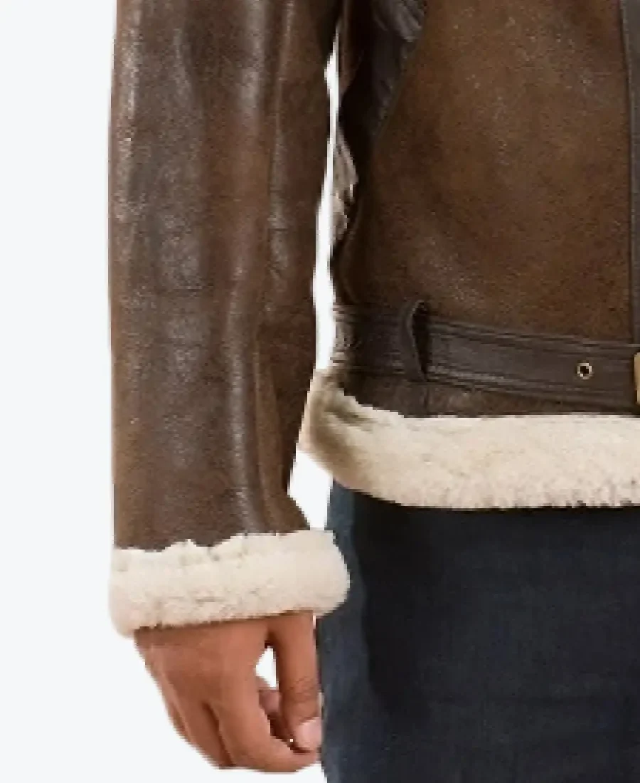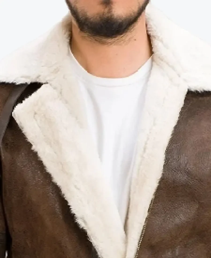 The architecture of this jacket is defined by its structured, heavy-duty silhouette and an iconic metropolitan “wilderness-elite” aesthetic. It features a sharp, oversized lapel-style collar fully lined with arctic-white faux shearling, providing a powerful frame to the neckline and superior thermal protection that exudes a classic professional vibe with a contemporary urban twist. The front is anchored by a high-performance central bronze zipper closure, maintaining a precision tailored fit profile that emphasizes the unique curved obsidian-brown leather piping and expert anatomical seam detailing. To ensure a sleek and uninterrupted profile at the extremities, the full-length sleeves and hem are finished with clean arctic-white fur cuffs, while the waist is secured by a striking integrated buckled leather belt that creates a sophisticated architectural volume. Designed for the individual who demands maximum organized utility within a polished frame, this Rare Jackets essential features a strategic pocket configuration including two technical vertical side entry welt pockets and a hidden inner pocket—offering secure storage while reinforcing the jacket’s sleek, high-impact silhouette.
