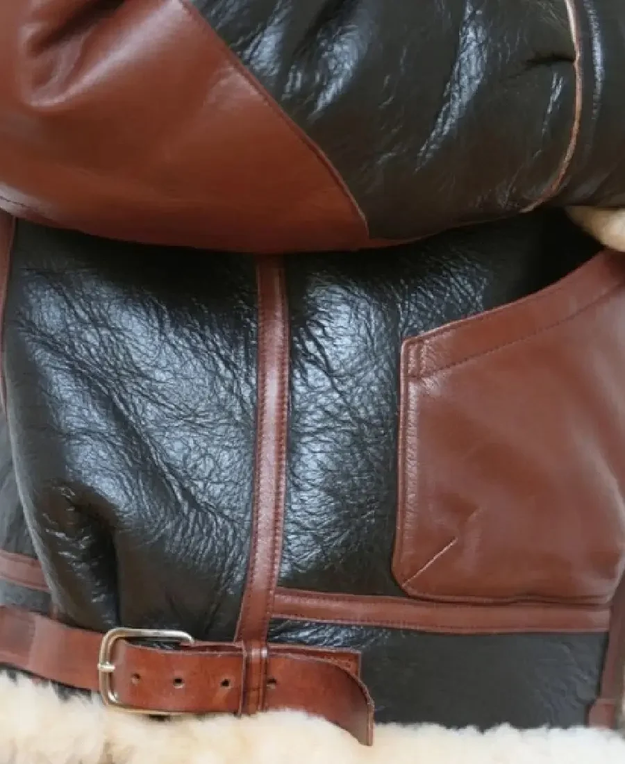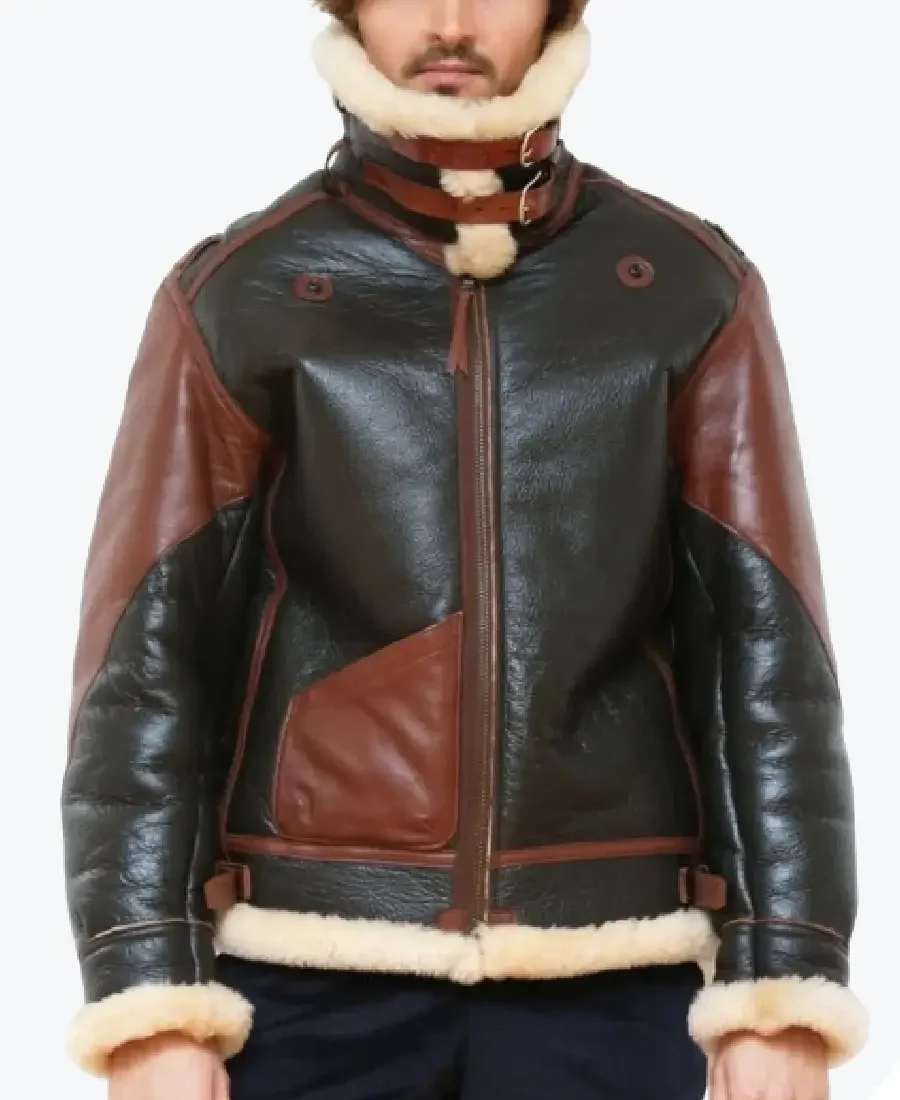 The Men’s Gale Austin Butler B3 Bomber Jacket by Rare Jackets is a masterclass in high definition urban architecture and precision luxury meticulously handcrafted from premium cowhide leather or high grade faux leather. Drenched in a commanding and timeless combination of deep espresso black and mahogany brown, this piece leverages a robust high grade grain and natural wind resistant properties to provide a formidable protective shell for the most extreme landscapes. The leather is selected for its industrial grade durability and a sophisticated distressed finish, ensuring the jacket maintains a sharp authoritative frame while projecting a raw, vintage aviator energy. Inside, the garment is fully integrated with a plush, high density cream faux shearling lining, providing a thermal insulated and friction free experience for maximum all day warmth and comfort.