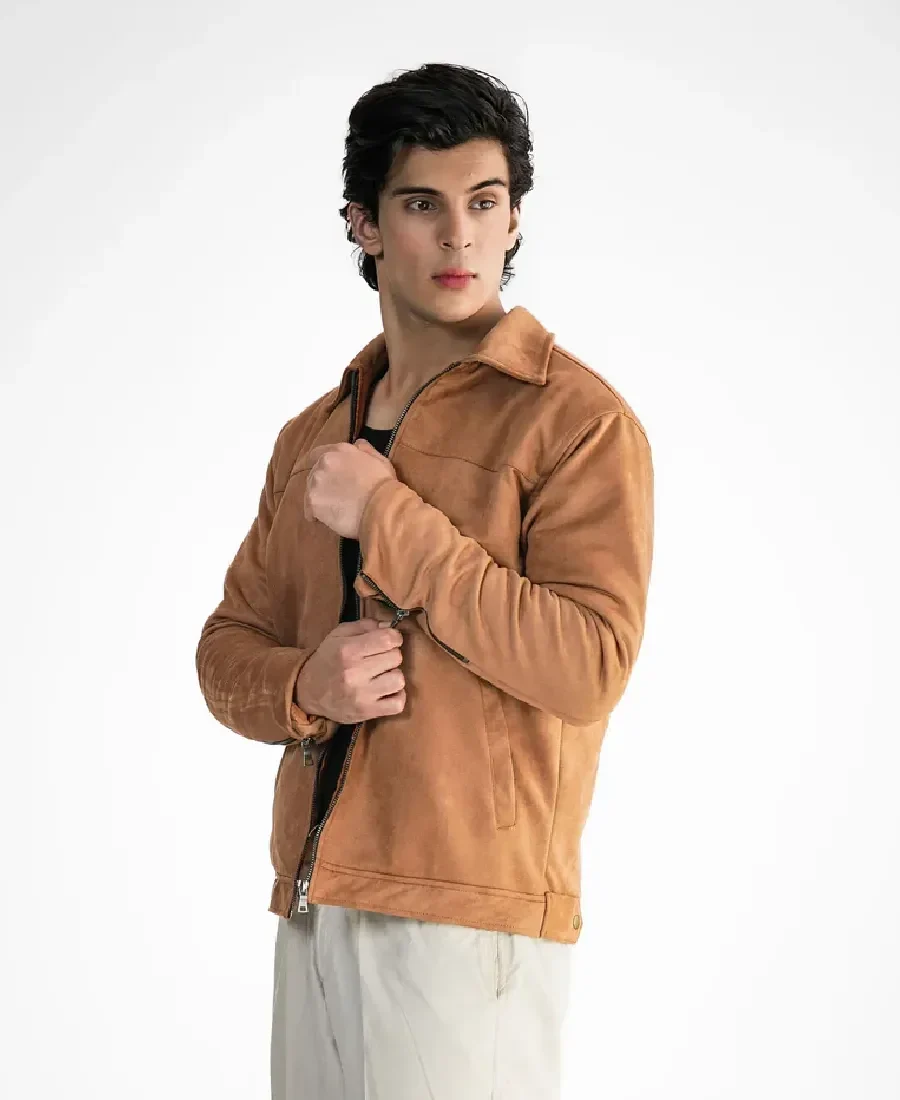 The design features a structured shirt style collar, offering a clean and traditional look that balances the jacket’s plush texture with a tailored edge. A high-quality zipper closure ensures a secure and reliable fit while maintaining a sharp and streamlined appearance. This jacket is practical and well-organized, featuring three pockets in total—two side pockets for convenient storage and hand warmth, and one inner pocket for the secure organization of personal essentials. Full-length sleeves are finished with zipper cuffs, providing an adjustable fit and a clean, tailored finish at the wrists that adds a touch of modern hardware to the classic design. Available in versatile black, classic brown, or deep dark brown, these colors provide a sophisticated foundation that coordinates effortlessly with any ensemble. This garment improves with age as the suede matures and develops a unique character over time. It serves as a reliable and stylish centerpiece for your outerwear collection and stands as a piece of premium craftsmanship.
