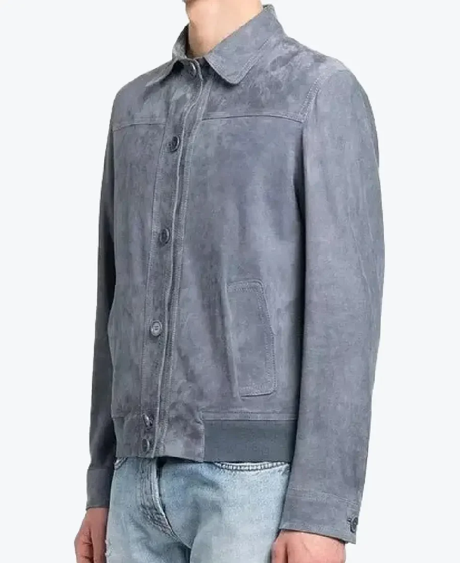 Shop The Rare Jackets Men’s Grey Suede Leather Bomber Jacket
