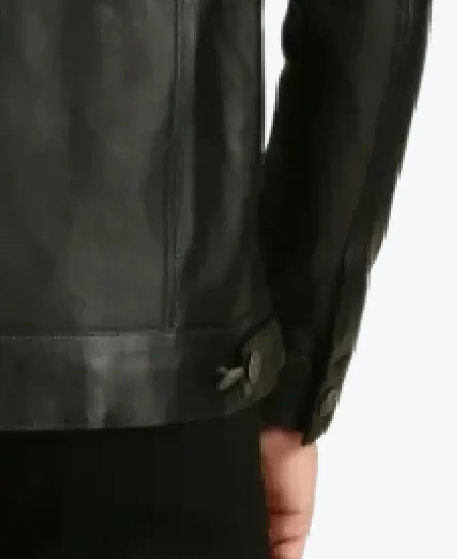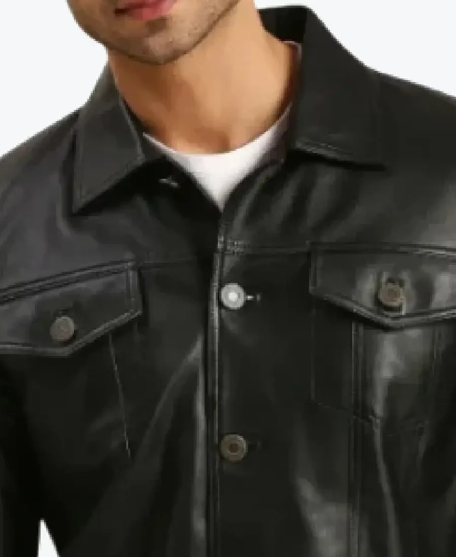 The architecture of this jacket is defined by its structured, slim-fit silhouette and an iconic metropolitan “trucker-luxe” aesthetic. It features a sharp turn-down shirt style leather collar providing a powerful frame to the neckline that exudes a classic professional vibe with a contemporary urban twist. The front is anchored by a high-performance central buttoned closure system with reinforced tonal hardware, maintaining a precision tailored fit profile that emphasizes the unique horizontal chest yokes and expert vertical anatomical seam detailing. To ensure a sleek and uninterrupted profile at the extremities, the full-length sleeves are finished with clean button cuffs, while the reinforced straight-cut hemline creates a sophisticated architectural volume. Designed for the individual who demands maximum organized utility within a polished frame, this Rare Jackets essential features a strategic five-pocket configuration including two expansive snap-button flap chest pockets, two discreet side entry welt pockets, and a hidden inner pocket—offering secure storage while reinforcing the jacket’s sleek, high-impact silhouette.