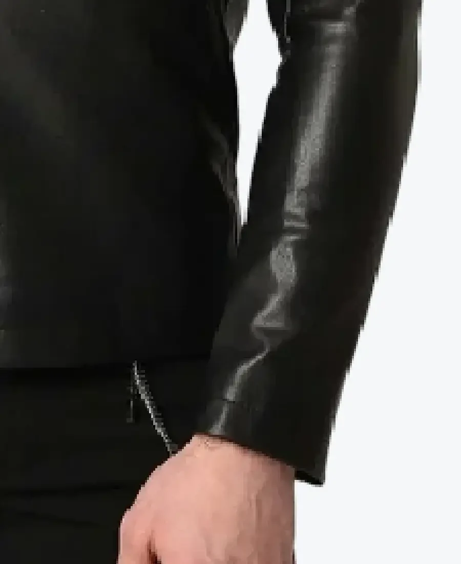 The architecture of this jacket is defined by its ultra-sleek aerodynamic silhouette and an iconic metropolitan “second-skin” aesthetic. It features a sharp erect short neck collar providing a structured and powerful frame to the neckline that exudes a classic professional vibe with a contemporary urban twist. The front is anchored by a high-performance central silver zipper closure, maintaining a precision tailored fit profile that emphasizes the unique seamless-front construction and expert anatomical seam detailing. To ensure a custom look and tapered profile at the extremities, the full-length sleeves are finished with clean round cuffs, while the reinforced straight-cut hemline creates a sophisticated architectural volume. Designed for the individual who demands maximum artistic flair within a polished frame, this Rare Jackets essential features a strategic pocket configuration including two discreet side entry welt pockets and a hidden inner pocket offering secure storage while reinforcing the jacket’s sleek, high-impact silhouette.