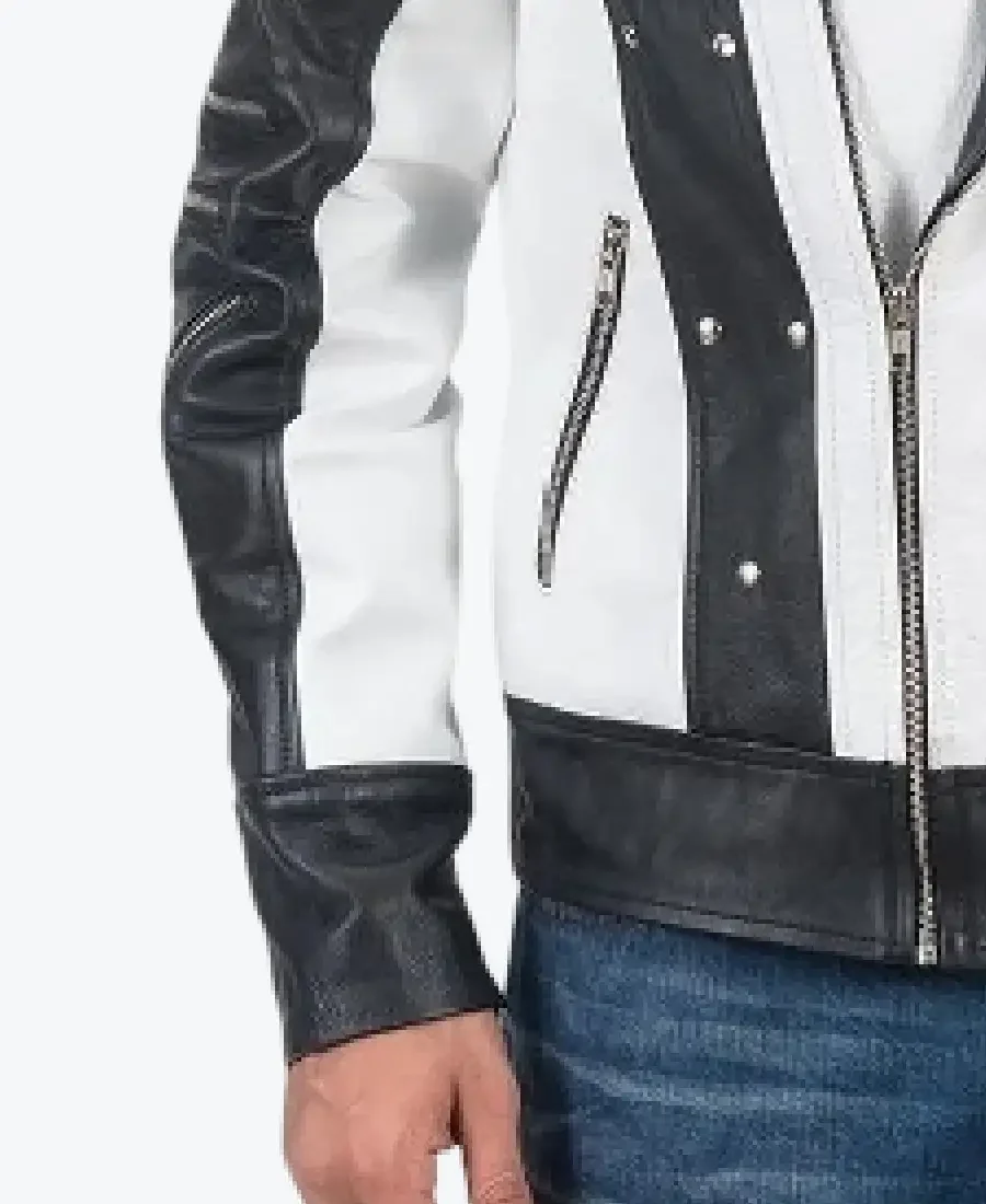 The Men’s Modern Design Black & White Leather Jacket by Rare Jackets is a masterclass in avant-garde urban architecture and precision luxury meticulously handcrafted from premium cowhide leather or high-grade faux leather. Drenched in a commanding and high-contrast obsidian black and stark arctic white, this piece leverages a robust high-grade grain and natural wind-resistant properties to provide a formidable protective shell for the modern landscape. The leather is selected for its industrial-grade durability and a sophisticated semi-gloss buttery finish, ensuring the jacket maintains a sharp authoritative frame while projecting a raw, high-fashion energy. Inside, the garment is fully integrated with a silky viscose lining, providing a breathable and friction-free experience for maximum all-day comfort.