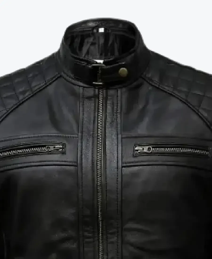 The architecture of this jacket is defined by its clean, aerodynamic lines and iconic quilted detailing. It features a contemporary round neck belt collar, providing a streamlined and secure frame to the neckline that exudes a bold, racer-inspired energy. The front is anchored by a heavy-duty zipper closure, maintaining a precision profile that transitions seamlessly from open-road adventures to urban environments. To ensure a custom fit and a polished finish at the wrists, the full-length sleeves are finished with high-performance snap button cuffs. Designed for the individual who demands maximum organized utility, this Rare Jackets essential features an expansive six-pocket configuration. With four front pockets (including two horizontal chest zips) and two hidden inner pockets, it offers unparalleled security for your gear while reinforcing the jacket’s powerful, architectural silhouette.