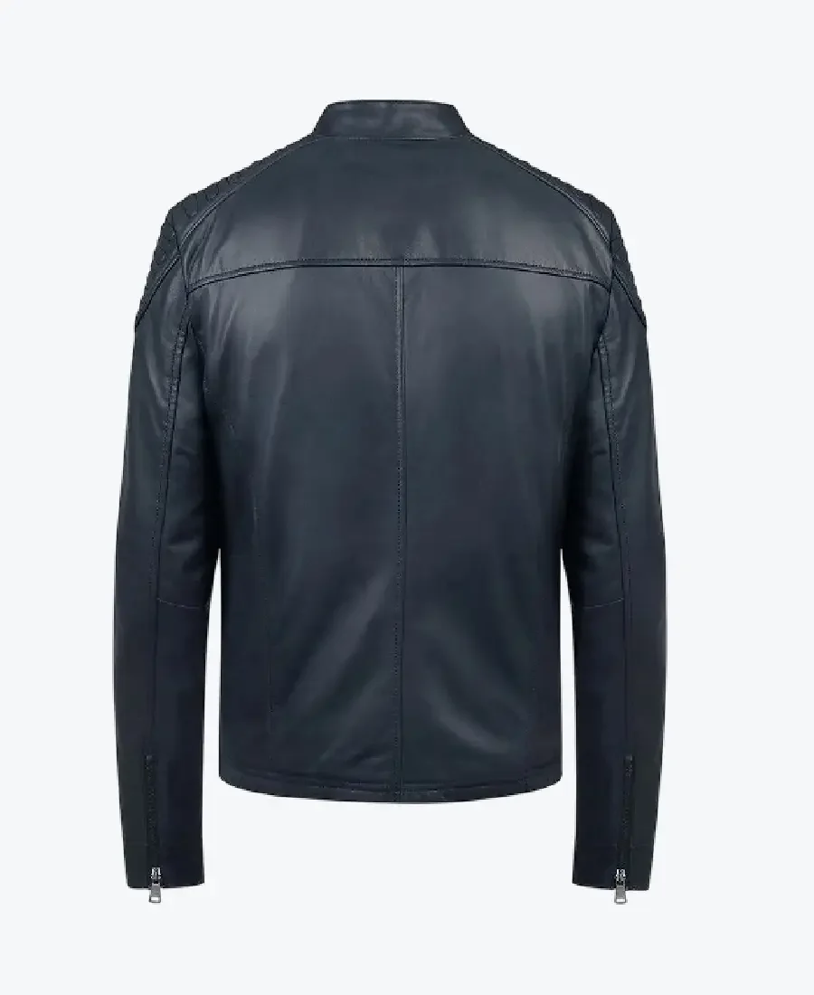 Shop The Rare Jackets Men’s Navy Leather Biker Jacket
