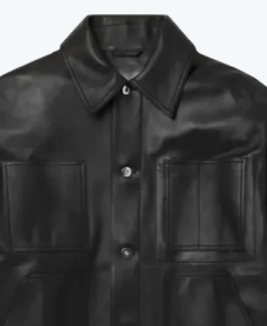 The architecture of this jacket is defined by its ultra-modern oversized silhouette and an iconic metropolitan “industrial-minimalist” aesthetic. It features a sharp turn-down shirt style leather collar providing a structured and powerful frame to the neckline that exudes a classic professional vibe with a contemporary urban twist. The front is anchored by a high-impact central silver button closure system, maintaining a precision tailored fit profile that emphasizes the unique horizontal waist panelling and expert drop-shoulder construction. To ensure a sleek and uninterrupted profile at the extremities, the full-length sleeves are finished with clean button cuffs, while the reinforced straight-cut hemline creates a sophisticated architectural volume. Designed for the individual who demands maximum organized utility within a polished frame, this Rare Jackets essential features a strategic five-pocket configuration including two expansive integrated chest pockets, two discreet side entry welt pockets, and a hidden inner pocket—offering secure storage while reinforcing the jacket’s sleek, high-impact silhouette.