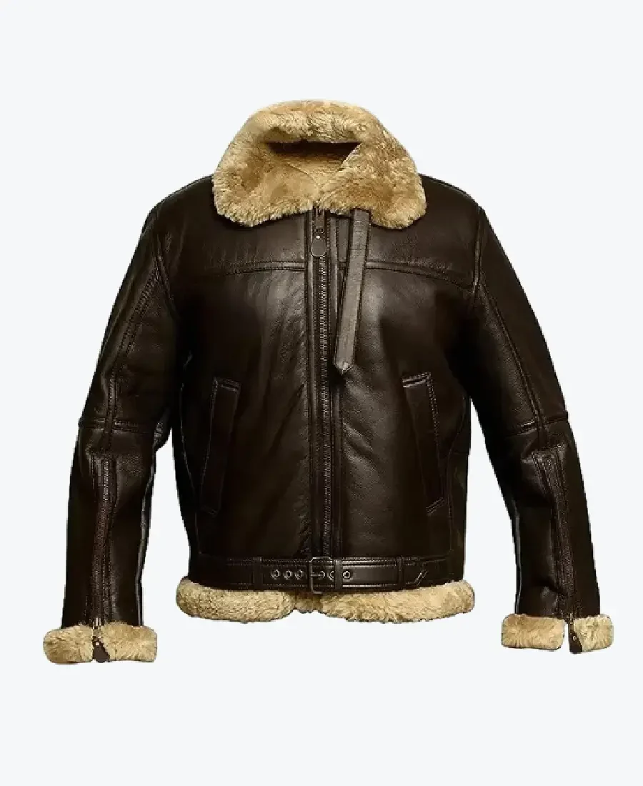 The architecture of this jacket is defined by its clean waist-length silhouette and an iconic “WWII-pilot” aesthetic. It features a sharp oversized shearling-style fur collar providing a structured and powerful frame to the neckline that exudes a classic professional vibe with a contemporary urban twist. The front is anchored by a high-performance offset zipper closure and is dramatically accented by an integrated wide leather waist belt with a reinforced buckle and double throat-latch straps, maintaining a precision tailored-fit profile that allows for an adjustable architectural cinch. To ensure a custom look and superior heat retention at the extremities, the full-length sleeves are finished with exposed fur open hem cuffs and functional zipper expansions, while the expert reinforced-seam construction and fur-trimmed hemline create a sophisticated architectural volume. Designed for the individual who demands maximum artistic flair within a polished frame, this Rare Jackets essential features a strategic pocket configuration—including two external slanted welt waist pockets and a hidden inner pocket—offering secure storage while reinforcing the jacket’s sleek, high-impact silhouette.