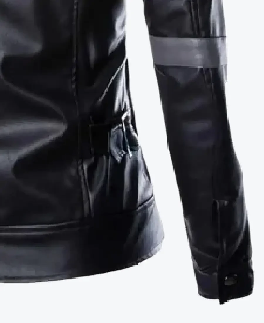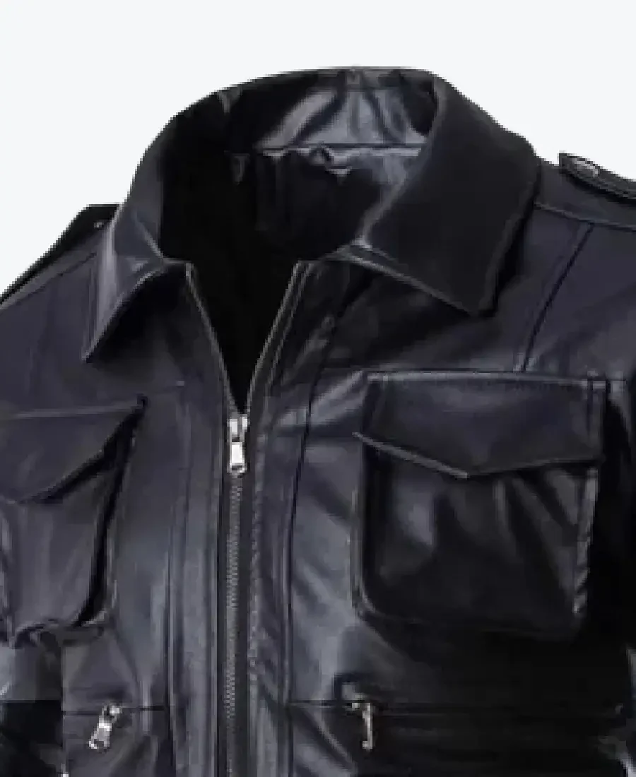 The architecture of this jacket is defined by its ultra-sleek slim-fit silhouette and an iconic metropolitan “tactical-racer” aesthetic. It features a sharp turn-down shirt style leather collar providing a structured and powerful frame to the neckline that exudes a classic professional vibe with a contemporary urban twist. The front is anchored by a high-performance central silver zipper closure, maintaining a precision tailored fit profile that emphasizes the unique dual-stripe gray accents running across the mid-section and arms. To ensure a custom look and secure profile at the extremities, the full-length sleeves are finished with clean button cuffs and expert epaulet shoulder straps, while the reinforced horizontal panelled hemline creates a sophisticated architectural volume. Designed for the individual who demands maximum organized utility within a polished frame, this Rare Jackets essential features a strategic seven-pocket configuration including four expansive snap-flap cargo pockets, two horizontal zipper waist pockets, and a hidden inner pocket—offering secure storage while reinforcing the jacket’s sleek, high-impact silhouette.