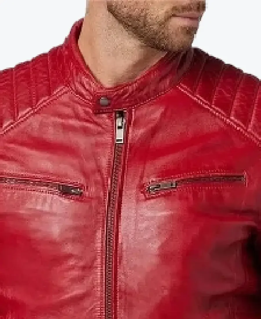 Shop The Rare Jackets Men’s Red Leather Biker Jacket