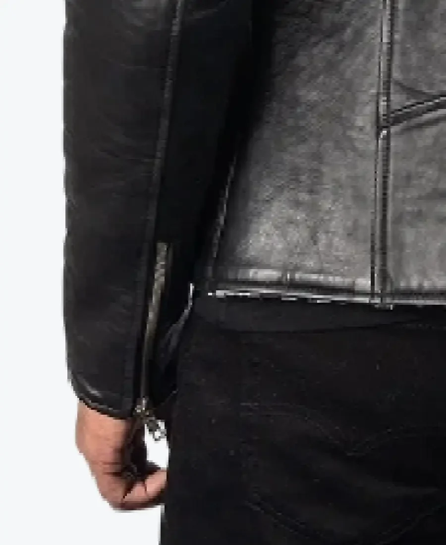 The architecture of this jacket is defined by its iconic asymmetrical lines and high-contrast tonal textures. It features a bold notch style Sherpa collar, providing a textured and powerful frame to the neckline that exudes a classic aviator-meets-biker aesthetic. The front is anchored by a high-performance asymmetrical brass-tone zipper closure, maintaining a precision slim-fit profile that highlights the jacket’s architectural tailoring. To ensure a custom fit and a tapered look at the wrists, the full-length sleeves are finished with high-performance zipper cuffs, complemented by clean, paneled stitching along the back and arms that enhances the garment’s structural integrity. Designed for the individual who demands maximum organized utility within a standout frame, this Rare Jackets essential features a strategic three-pocket configuration, including a diagonal chest zip pocket, two vertical side zip pockets, and a hidden inner pocket, offering secure storage while reinforcing the jacket’s powerful, high-impact silhouette.