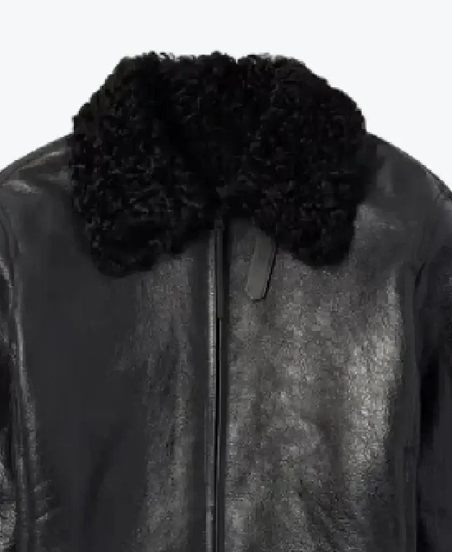 The architecture of this jacket is defined by its clean, boxy silhouette and an iconic metropolitan “stealth-aviator” aesthetic. It features a sharp turn-down shirt style collar enhanced with a luxurious, deep obsidian curly shearling fur, providing a structured and powerful frame to the neckline that exudes a classic professional vibe with a contemporary urban twist. The front is anchored by a high-performance central silver zipper closure with an oversized leather pull-tab, maintaining a precision tailored fit profile that emphasizes the unique light-reflective texture and expert anatomical seam detailing. To ensure a sleek and uninterrupted profile at the extremities, the full-length sleeves are finished with clean round cuffs, while the reinforced straight-cut hemline creates a sophisticated architectural volume. Designed for the individual who demands maximum artistic flair and uncompromising warmth, this Rare Jackets essential features a strategic pocket configuration including two discreet side entry welt pockets and a hidden inner pocket—offering secure storage while reinforcing the jacket’s sleek, high-impact silhouette.