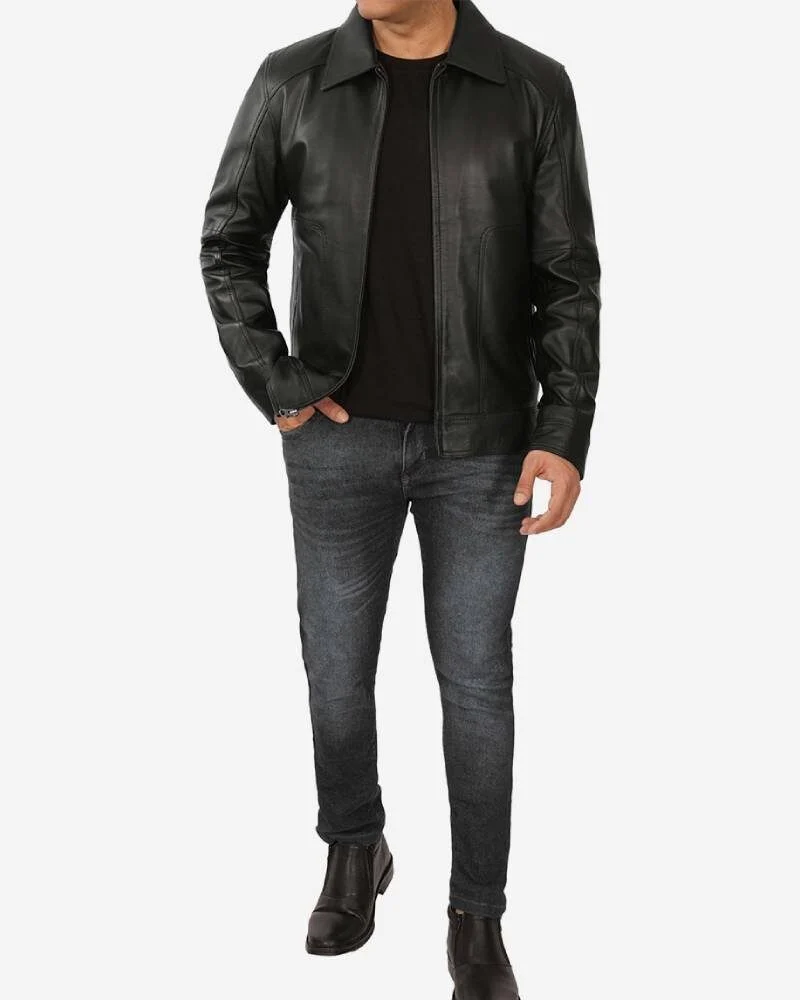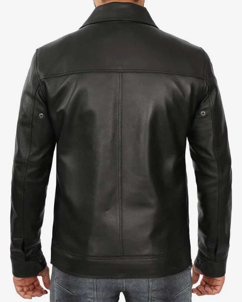 Shop The Rare Jackets Men’s Shirt Collar Classic Black Leather Jacket