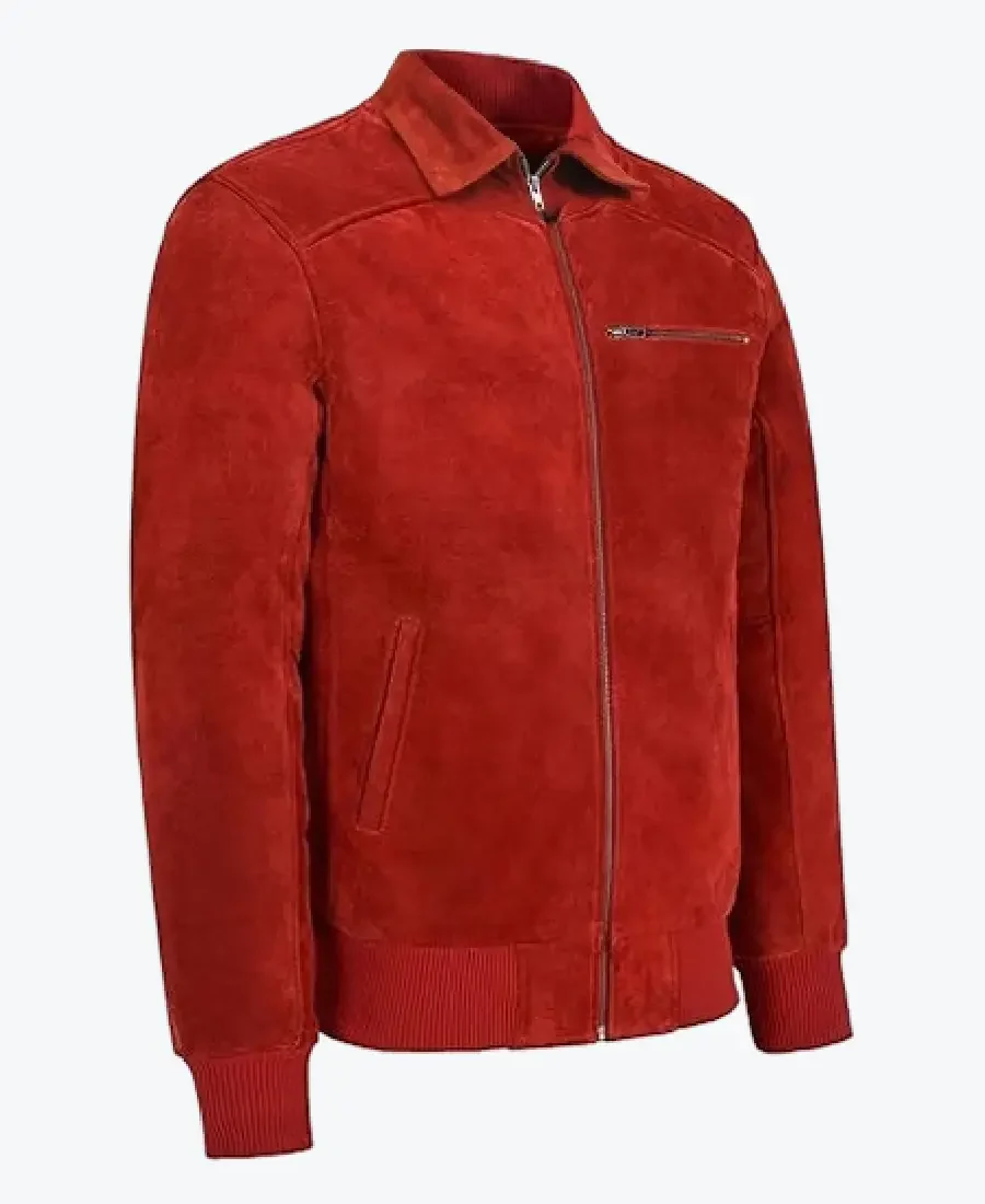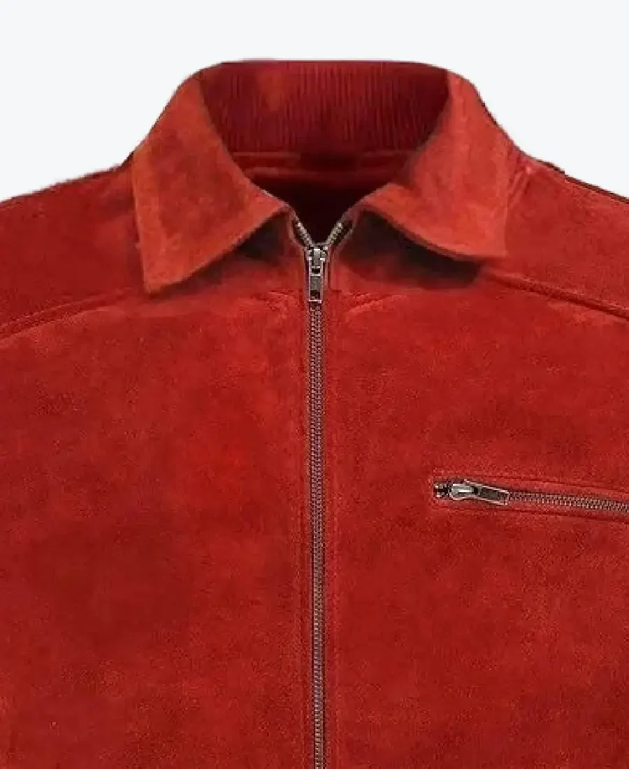 Men’s Shirt Style Red Suede Leather Moto Jacket