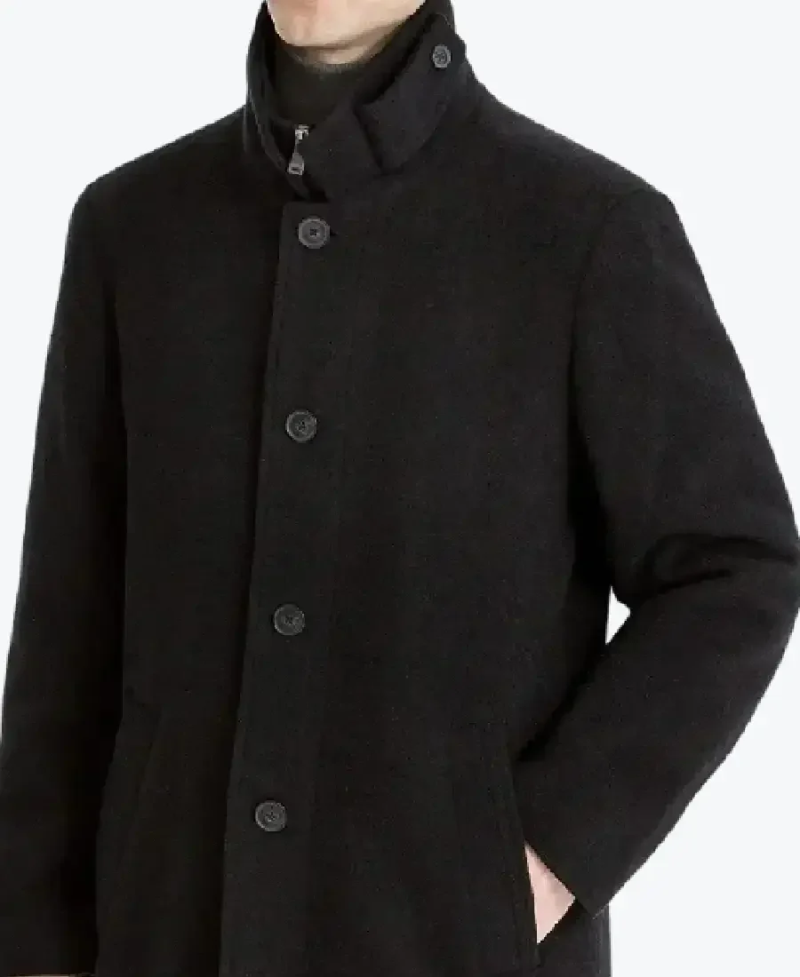 Men’s Single Breasted Black Wool Topcoat