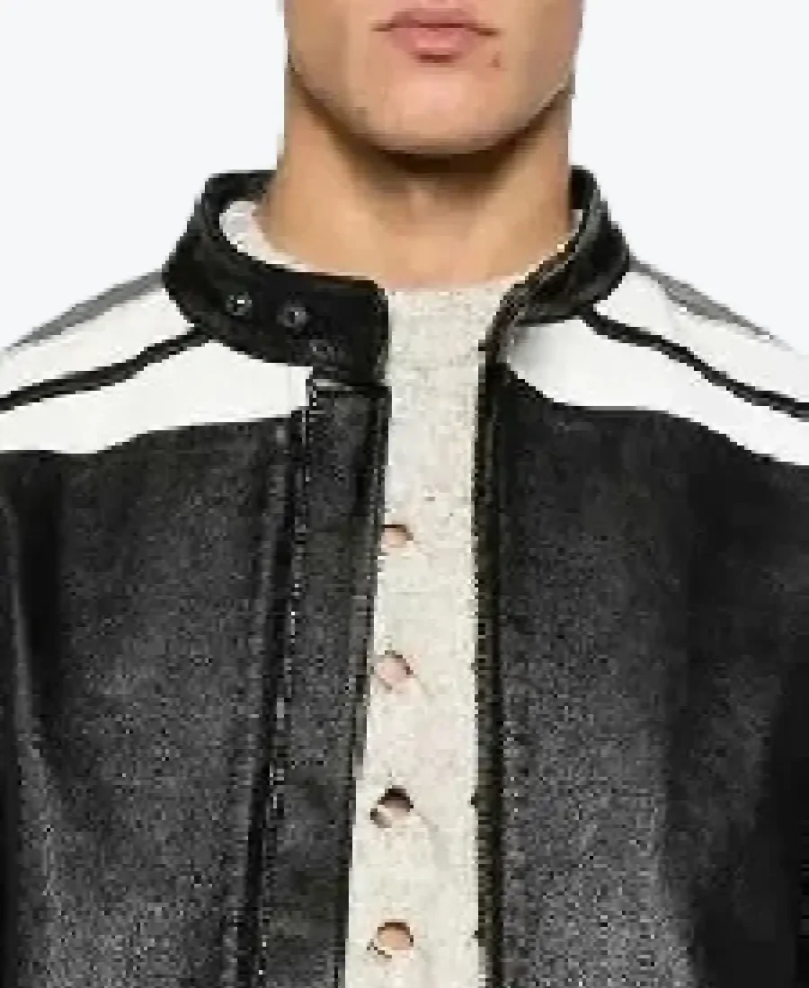 The Men’s Strips Detailing Black Leather Biker Jacket by Rare Jackets is a masterclass in high-contrast athletic design and precision urban luxury, meticulously handcrafted from premium cowhide leather (also available in high-grade faux leather). Drenched in a commanding obsidian black with striking ivory white racing stripes, this piece leverages a robust, textured grain and natural wind-resistant properties to provide a formidable protective shell. The hide is selected for its industrial-grade durability and a sophisticated matte-sheen finish, ensuring the jacket maintains a sharp, authoritative frame while projecting a raw, contemporary energy. Inside, the garment is fully lined with a silky viscose lining, providing a breathable and friction-free experience for maximum all-day comfort.