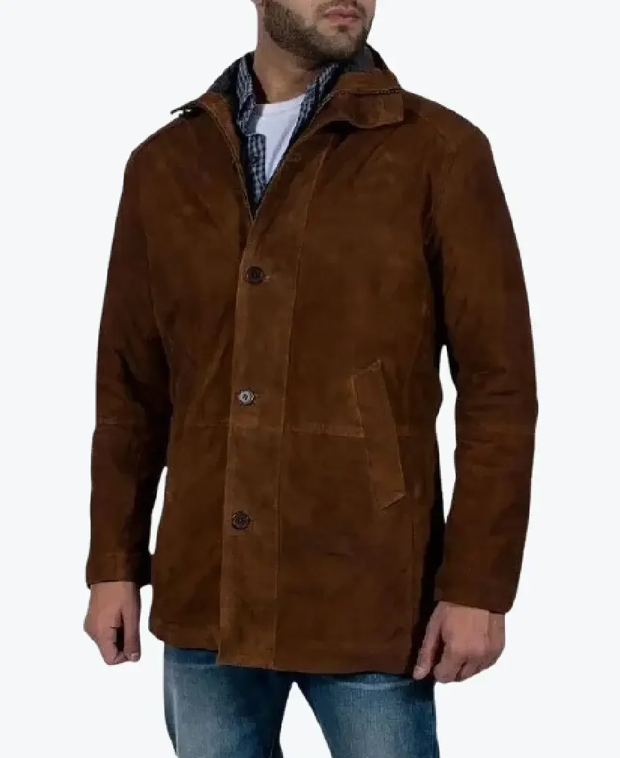 Experience the pinnacle of tactile luxury with the Men’s Taylor Brown Suede Leather Coat from Rare Jackets. This piece is meticulously crafted from premium suede leather, offering a velvety, matte texture that provides an instantly elevated aesthetic compared to standard smooth leather. The rich, chocolate brown hue enhances the natural grain of the suede, creating a warm and inviting look that serves as the perfect cornerstone for a sophisticated autumnal wardrobe.