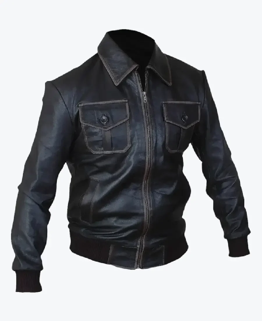 The Men’s Turn Down Collar Bomber Leather Jacket by Rare Jackets is a masterclass in hybrid military-inspired design and precision luxury meticulously handcrafted from premium cowhide leather or high-grade faux leather. Drenched in a commanding and timeless obsidian black, this piece leverages a robust high-grade grain and natural wind-resistant properties to provide a formidable protective shell for the modern urban landscape. The leather is selected for its industrial-grade durability and a sophisticated semi-matte finish with subtle tonal edge-fading, ensuring the jacket maintains a sharp authoritative frame while projecting a raw, high-fashion energy. Inside, the garment is fully integrated with a silky viscose lining, providing a breathable and friction-free experience for maximum all-day comfort.