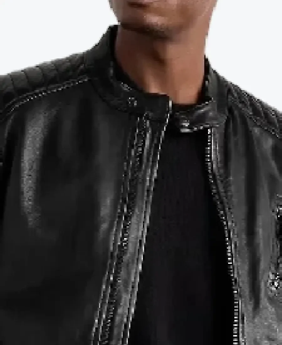 The architecture of this jacket is defined by its ultra-sleek racer silhouette and an iconic metropolitan “speedway-elite” aesthetic. It features a sharp erect short neck collar with a secure snap-button tab, providing a structured and powerful frame to the neckline that exudes a classic professional vibe with a contemporary urban twist. The front is anchored by a high-performance central silver zipper closure, maintaining a precision tailored fit profile that emphasizes the unique horizontal ribbed padding on the shoulders and expert anatomical seam construction. To ensure a custom look and tapered profile at the extremities, the full-length sleeves are finished with high-impact silver zipper cuffs, while the reinforced horizontal hemline creates a sophisticated architectural volume. Designed for the individual who demands maximum organized utility within a polished frame, this Rare Jackets essential features a strategic pocket configuration including one technical vertical zipper chest pocket, two discreet side entry zipper pockets, and a hidden inner pocket—offering secure storage while reinforcing the jacket’s sleek, high-impact silhouette.