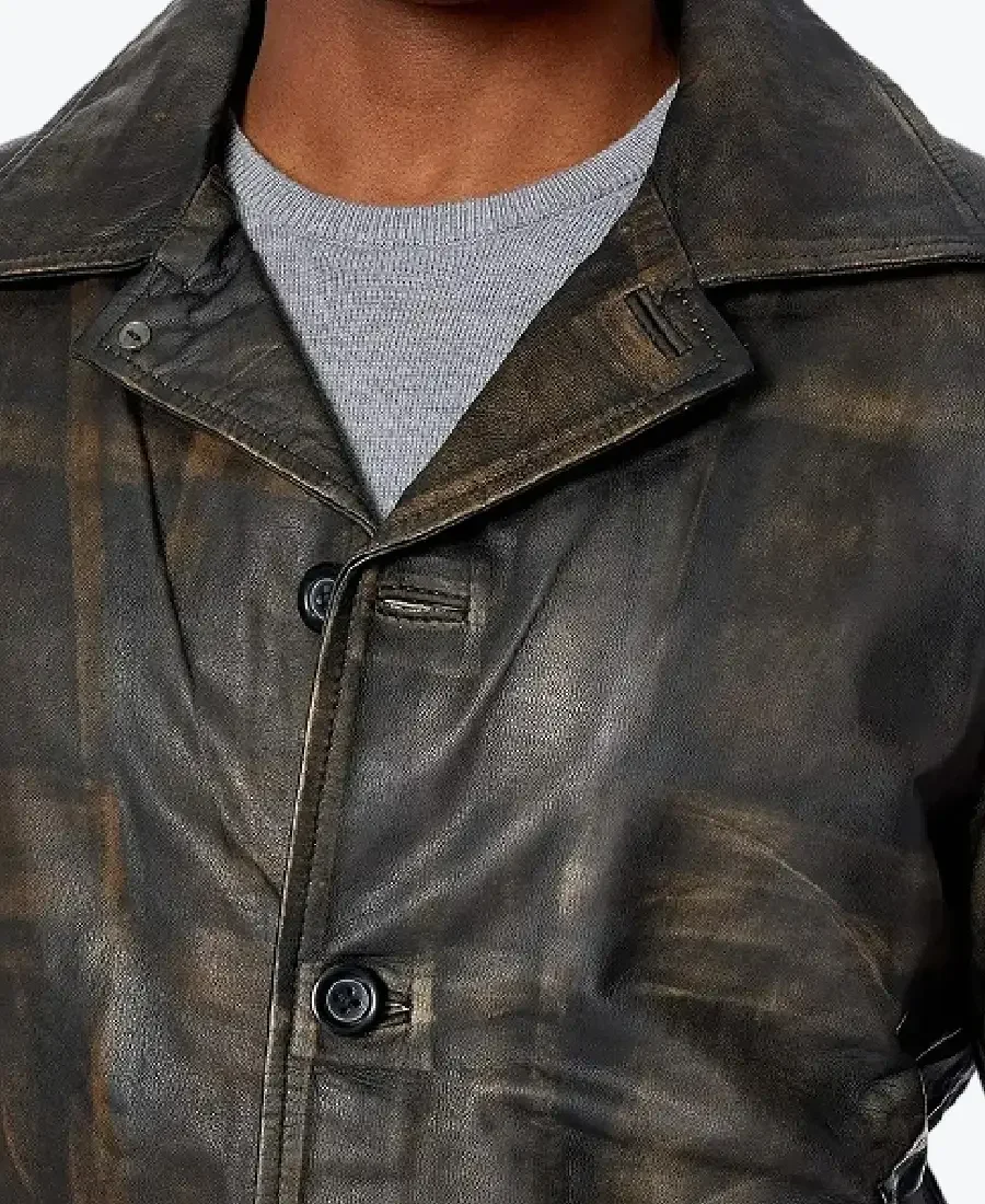 The architecture of this jacket is defined by its clean, mid-length lines and a rugged professional aesthetic. It features a contemporary stand-up lapel style collar, providing a structured and powerful frame to the neckline that exudes a classic car-coat-meets-vintage-aviator vibe. The front is anchored by a high-performance four-button closure, maintaining a precision relaxed-fit profile that allows for effortless layering over knits or casual tees. To ensure a natural and streamlined drape at the wrists, the full-length sleeves are finished with clean open hem cuffs, complemented by a sophisticated horizontal seam at the waist and vertical paneled stitching that adds structural depth to the silhouette. Designed for the individual who demands maximum presence within a polished frame, this Rare Jackets essential features a strategic two vertical side welt pocket configuration, offering secure storage while reinforcing the jacket’s sleek, high-impact silhouette.