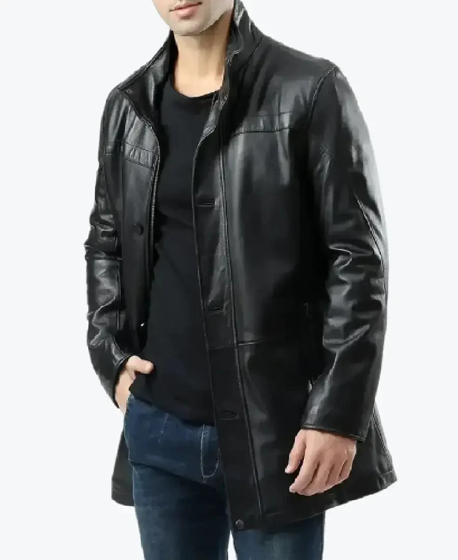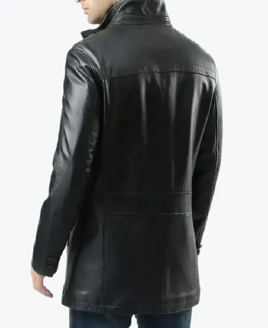 The architecture of this coat is defined by its clean mid-length silhouette and an iconic “modern-urban-utility” aesthetic. It features a sharp stand-up funnel collar providing a structured and powerful frame to the neckline that exudes a classic professional vibe with a contemporary urban twist. The front is anchored by a dual high-performance closure system featuring both a central zipper and a sophisticated button-down storm placket, maintaining a precision tailored-fit profile that emphasizes the unique horizontal chest-yoke and expert vertical seam construction. To ensure a sleek and uninterrupted profile at the extremities, the full-length sleeves are finished with clean buttoned cuffs, while the expert anatomical construction and thigh-length cut create a sophisticated architectural volume. Designed for the individual who demands maximum organized utility within a polished frame, this Rare Jackets essential features a strategic three-pocket configuration—including two discreet vertical zipper side-entry pockets and a hidden inner pocket—offering secure storage while reinforcing the coat’s sleek, high-impact silhouette.