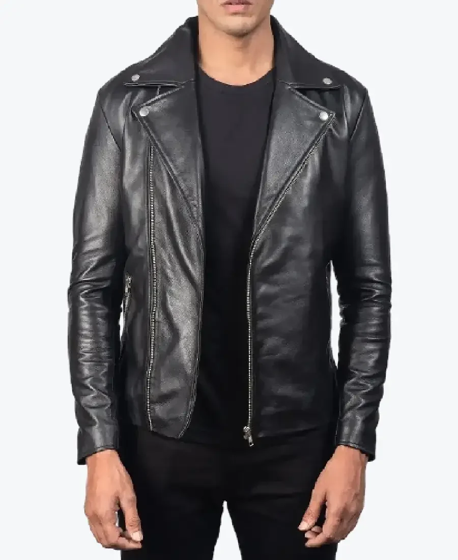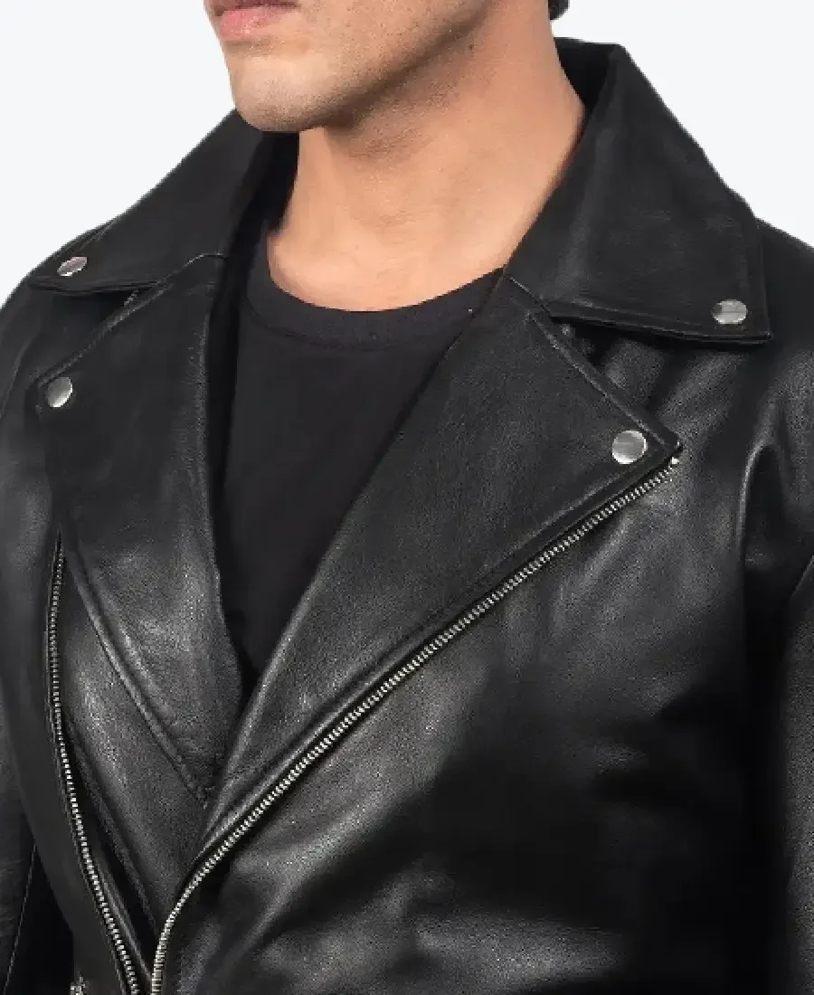 The architecture of this jacket is defined by its iconic asymmetrical lines and refined brass-tone hardware. It features a bold lapel style collar with polished snap-down detailing and military-inspired epaulets on the shoulders, lending a structured and powerful frame to the silhouette that exudes a classic motorcycle aesthetic. The front is anchored by a high-performance asymmetrical zipper closure, maintaining a precision slim-fit profile that highlights the jacket’s architectural tailoring. To ensure a custom fit and a tapered look at the wrists, the full-length sleeves are finished with high-performance zipper cuffs, complemented by clean, paneled stitching along the arms. Designed for the individual who demands standout utility within a sophisticated frame, this Rare Jackets essential features a strategic four-pocket configuration, including two vertical side zip pockets and two hidden inner pockets, offering secure storage while reinforcing the jacket’s powerful, high-impact silhouette.