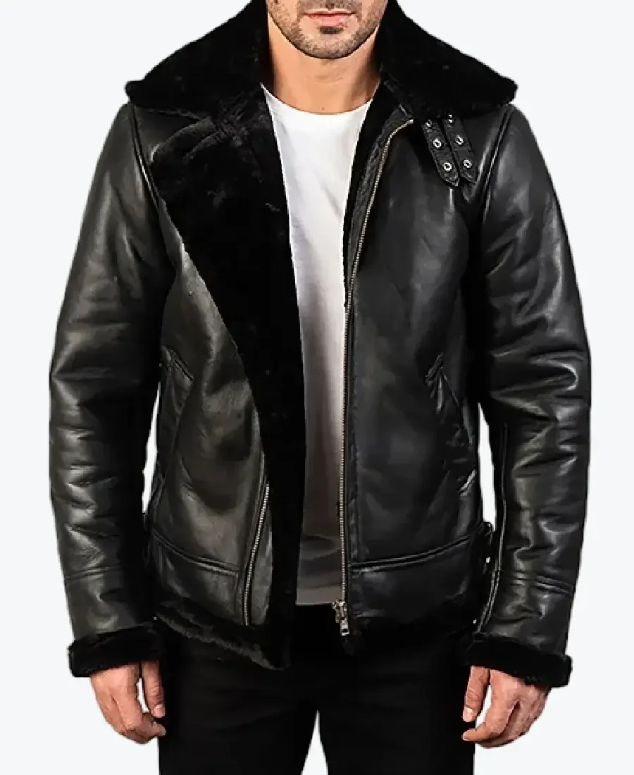 Shop The Rare Jackets Orban Men’s Black B-3 Bomber Leather Jacket