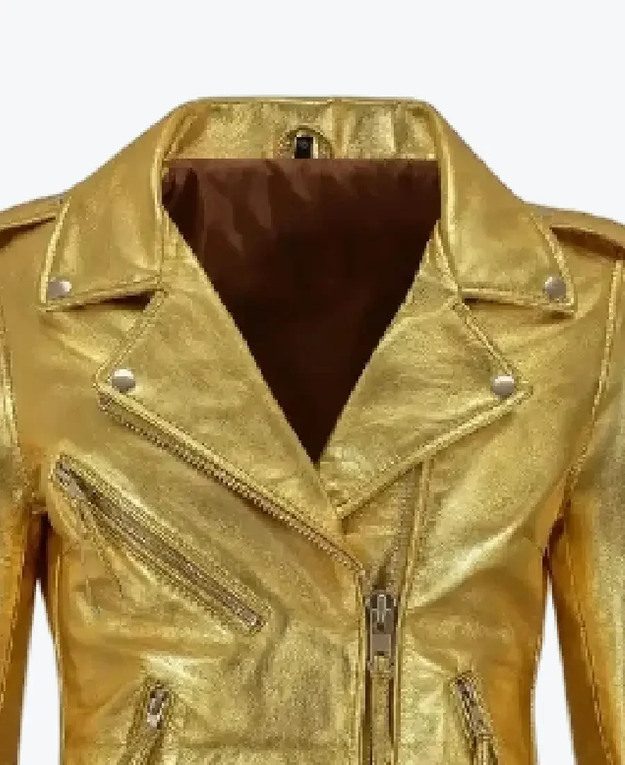Shop The Rare Jackets Paradise Gold Leather Biker Jacket