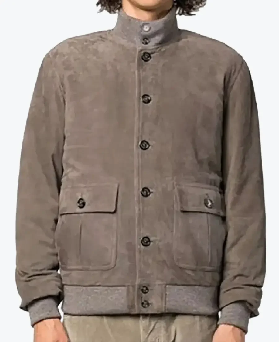 Ray Men’s Light Grey A-1 Bomber Suede Jacket